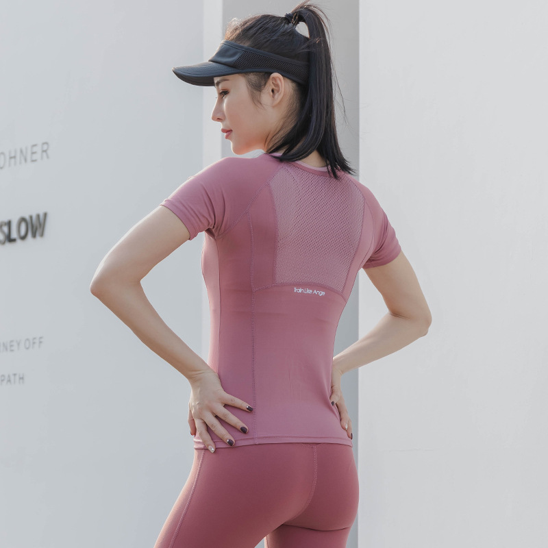 스포츠 티셔츠 반팔 여성 인터넷 연예인 섹시한 아름다운 등 탄성 피트니스 요가 착용 속건 슬리밍 라운드 넥 달리기스토어 가기