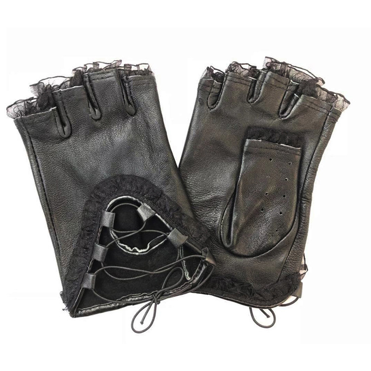 여성용 가죽 장갑 스포츠 라이딩 한국 레저 타이핑 반 손가락 장갑 얇은 레이스 장갑 도매