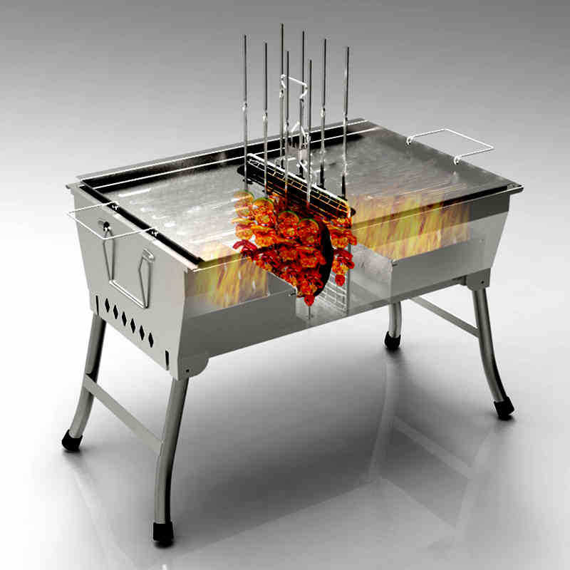 4)铁板烧、烤串、烤网夹可同时使用,充分立体地利用了烤炉空间,省碳,省时