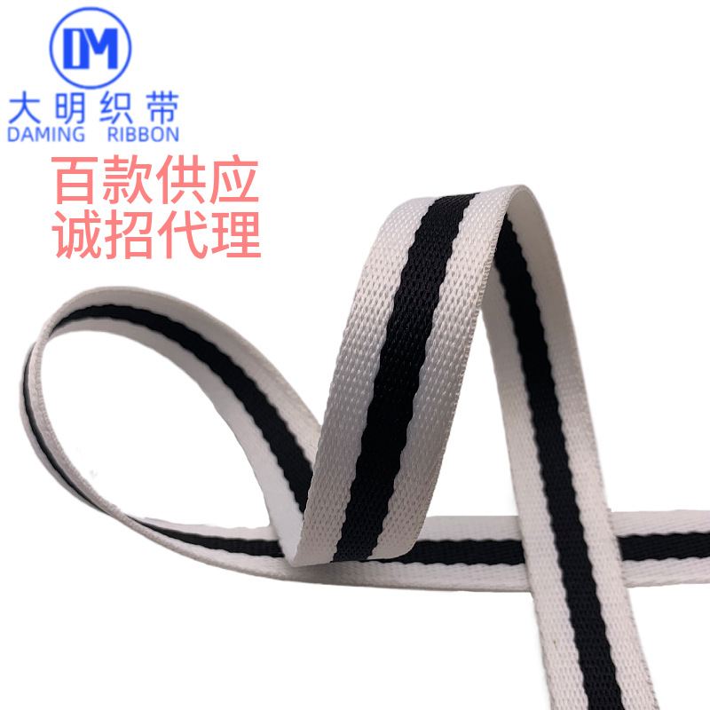 3 색 스트립 능직 사이 혼합 폴리에스터 네트워크 실크 흰색 검정과 흰색 범프 웨빙 공장 도매 재고 수하물 액세서리스토어 가기