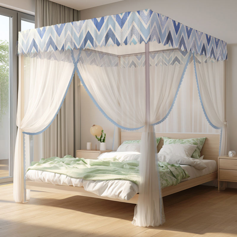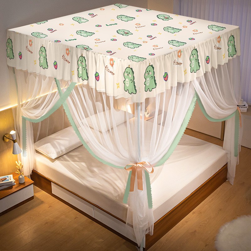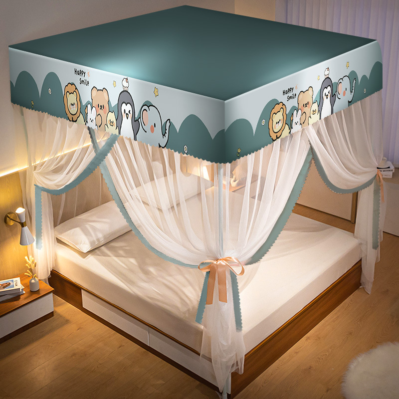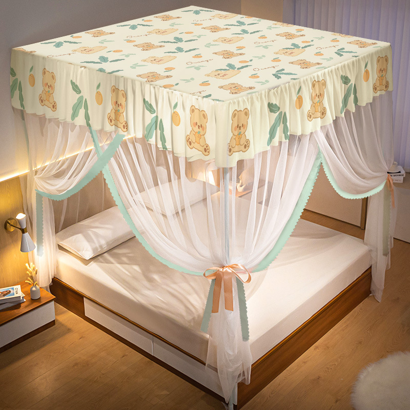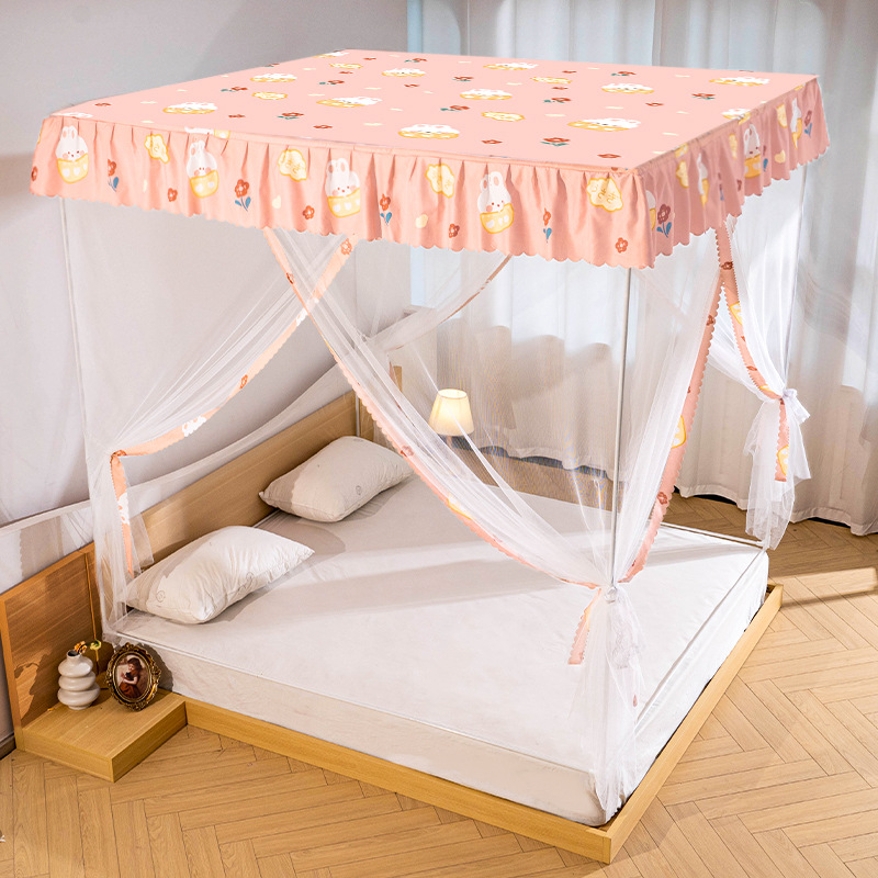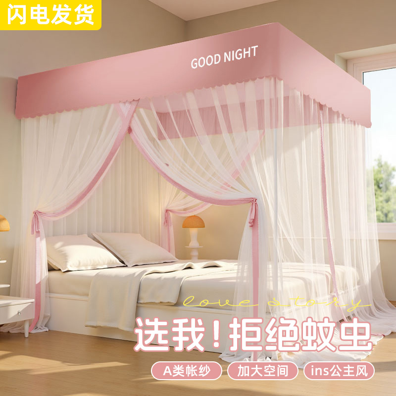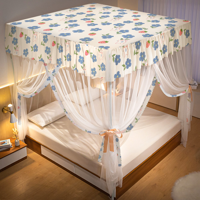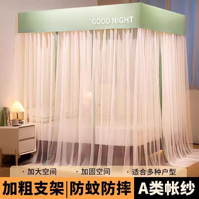 바닥에 놓는 3문형 궁궐 모기장, 3문형 거즈 모기장, 가정용 두꺼운 페인트칠 처리된 지지대, 1.5m 침대 커튼, A급, 무료 배송