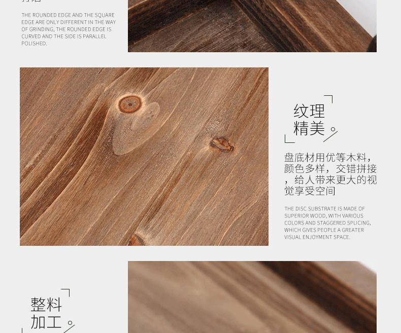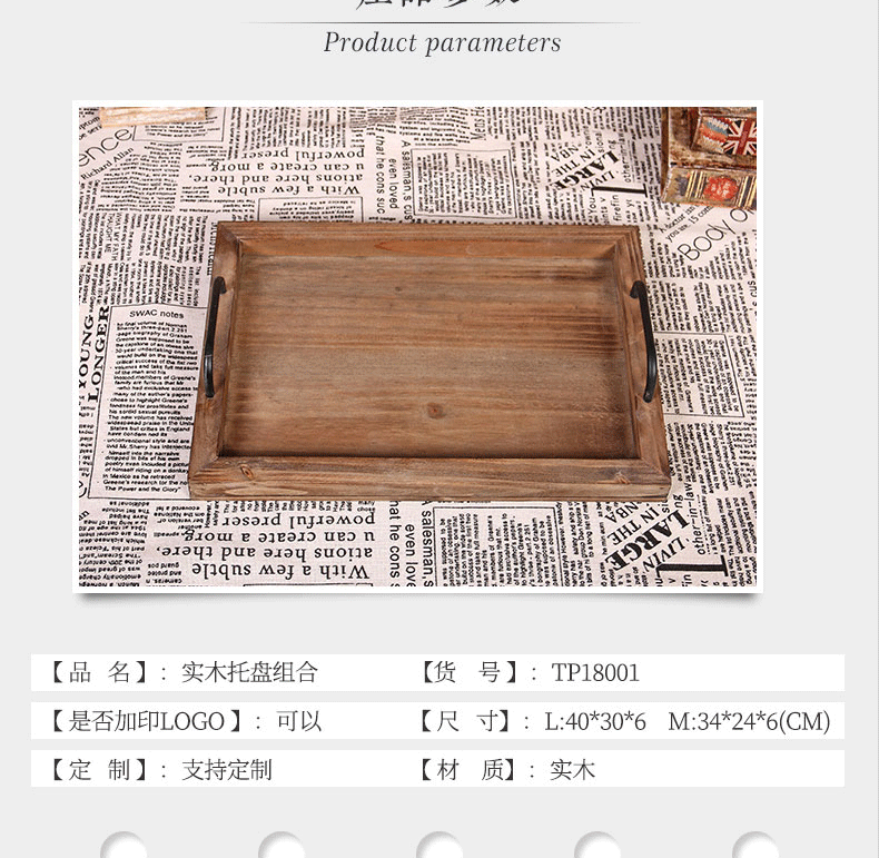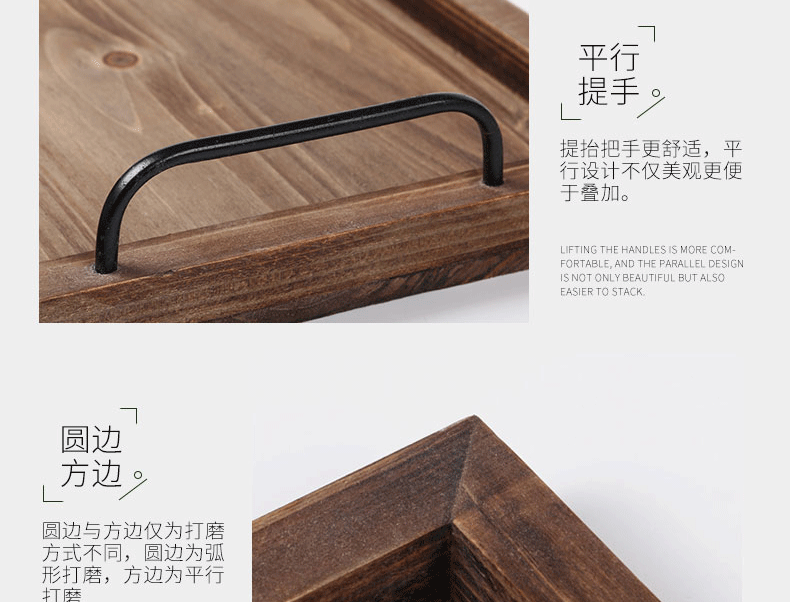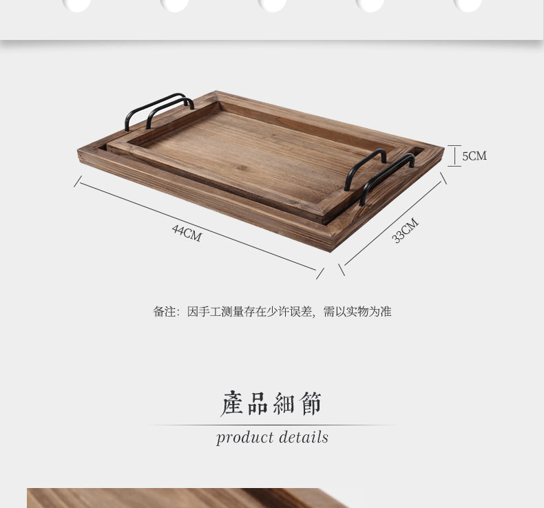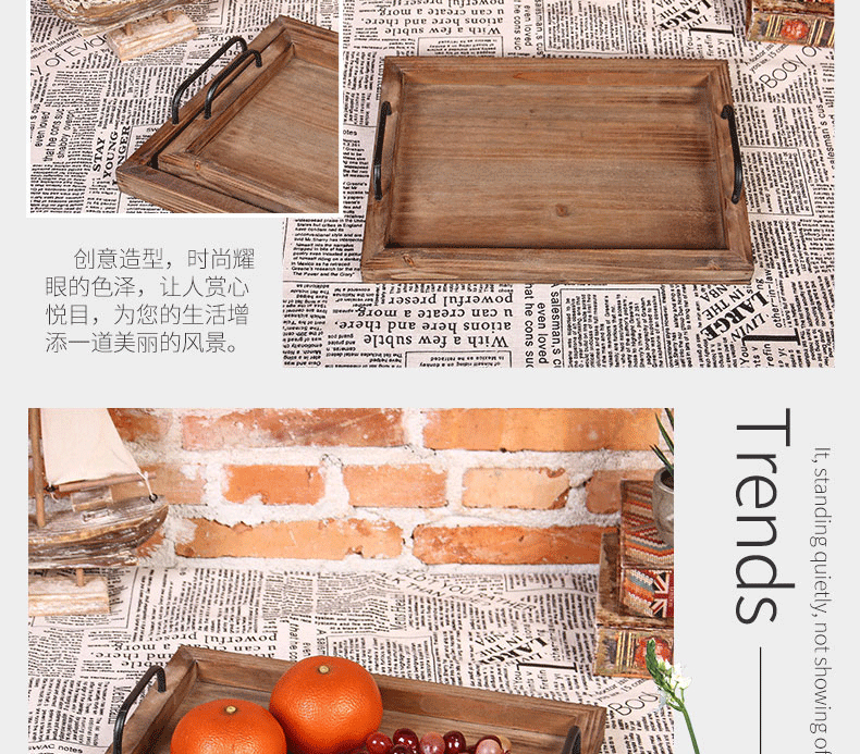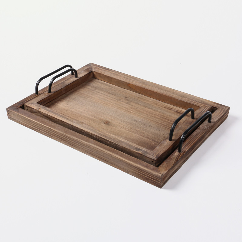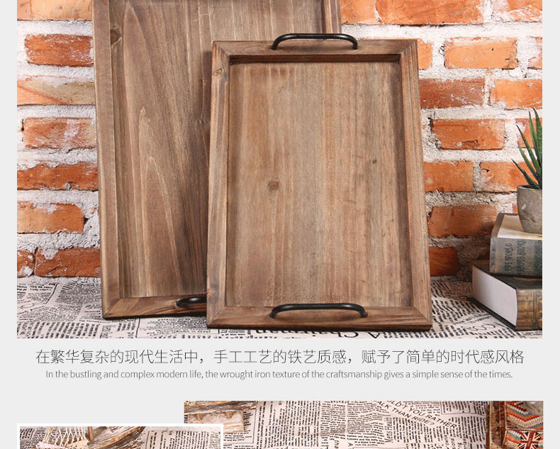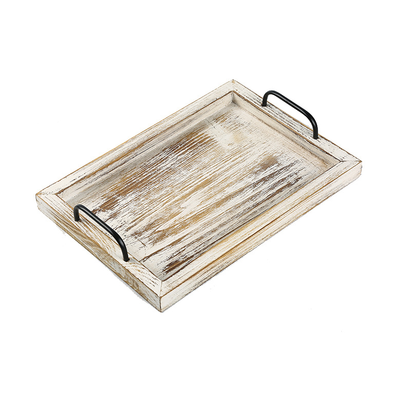 미국식 직사각형 접시 호텔 바 카페 배달 접시 빈티지 금속 손잡이 오래된 나무 트레이스토어 가기