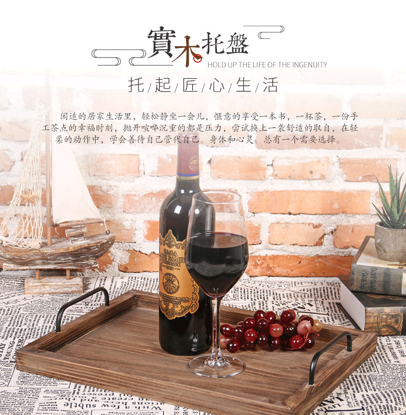 미국식 직사각형 접시 호텔 바 카페 배달 접시 빈티지 금속 손잡이 오래된 나무 트레이