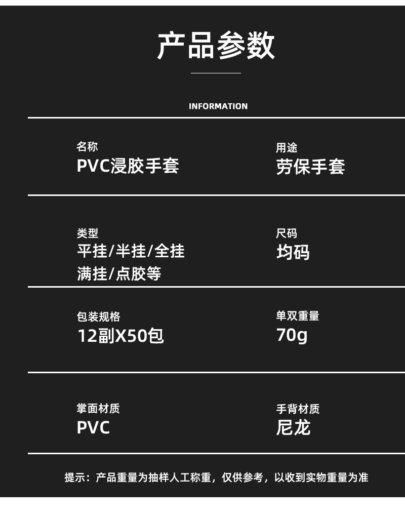 흰색 원사 PVC 담그기 노동 보호 장갑 평평한 교수형 대형 반 걸이 전체 교수형 미끄럼 방지 내마모성 작업 장갑