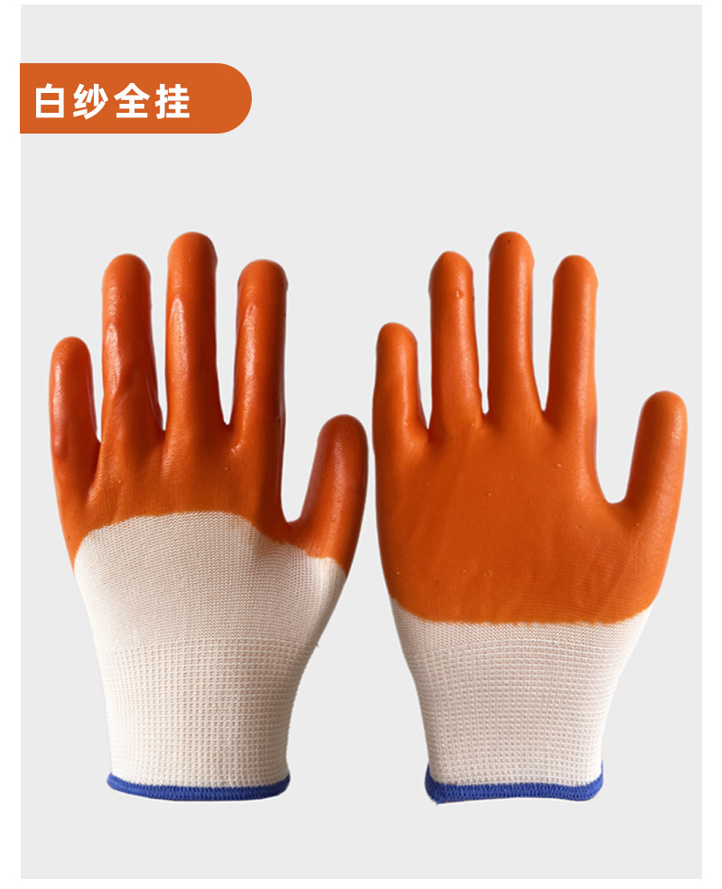 흰색 원사 PVC 담그기 노동 보호 장갑 평평한 교수형 대형 반 걸이 전체 교수형 미끄럼 방지 내마모성 작업 장갑스토어 가기