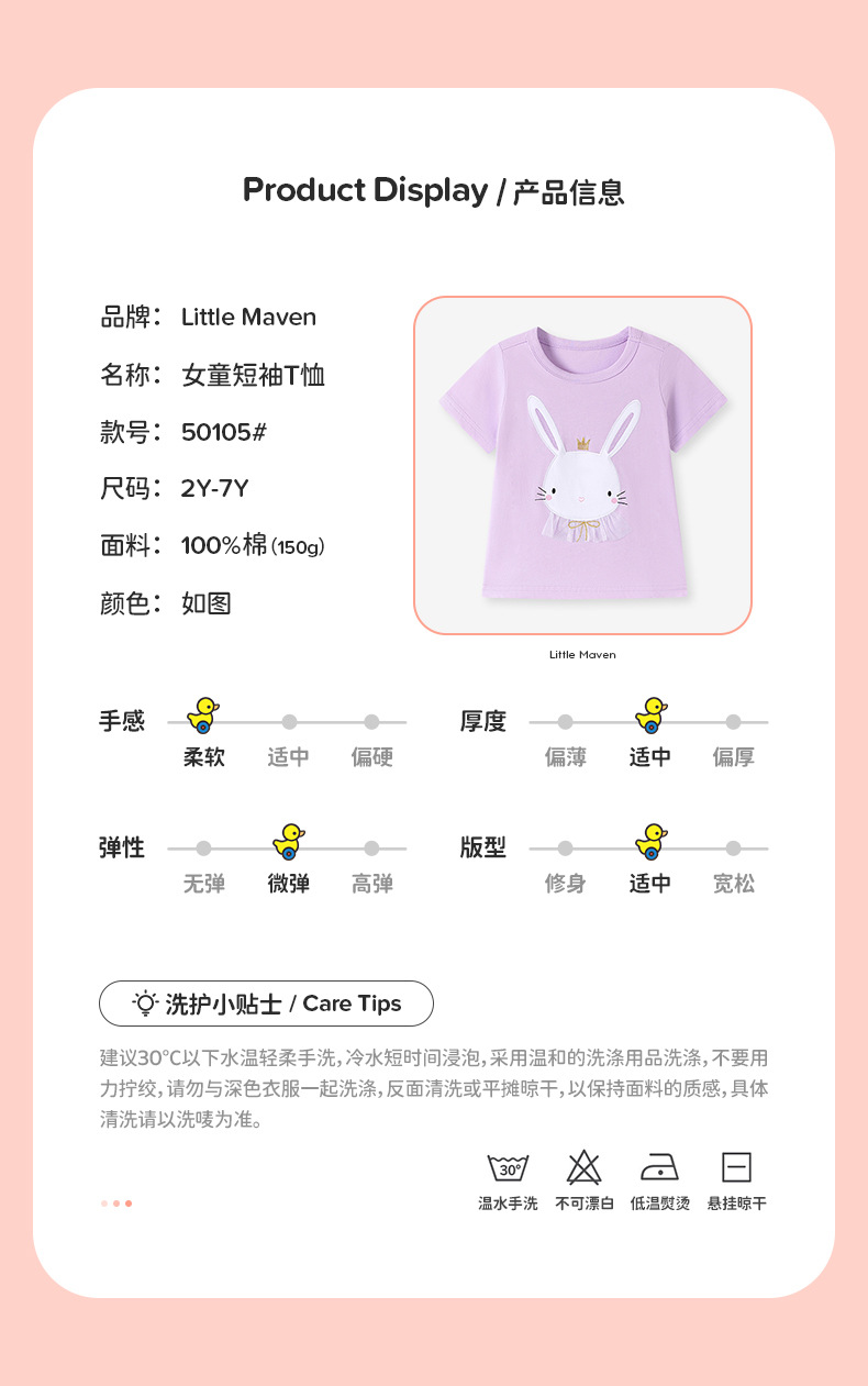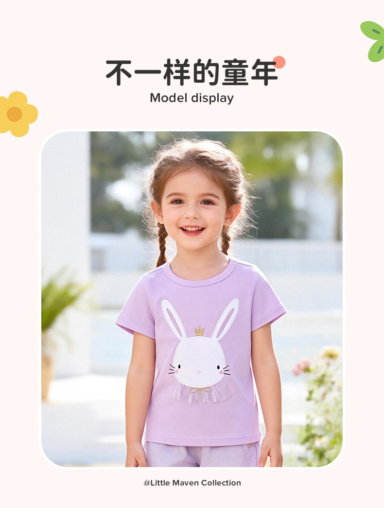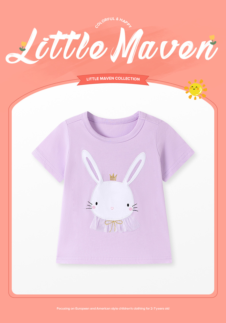 작은 maven 유럽과 미국 스타일의 여름 소녀 티셔츠 순수한면 니트 어린이 티셔츠 짧은 소매 최고 국경 아동복스토어 가기
