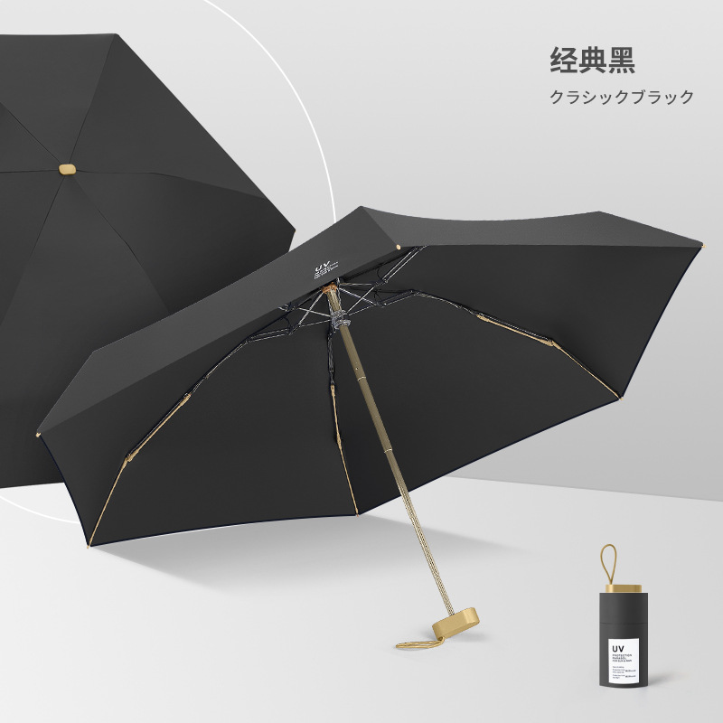 60% 접힌 선물 상자 팬 우산 검은 고무 태양 보호 자외선 보호 태양 우산 울트라 라이트 휴대용 눈 비 이중 목적 태양 우산