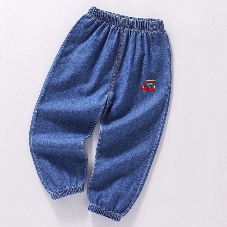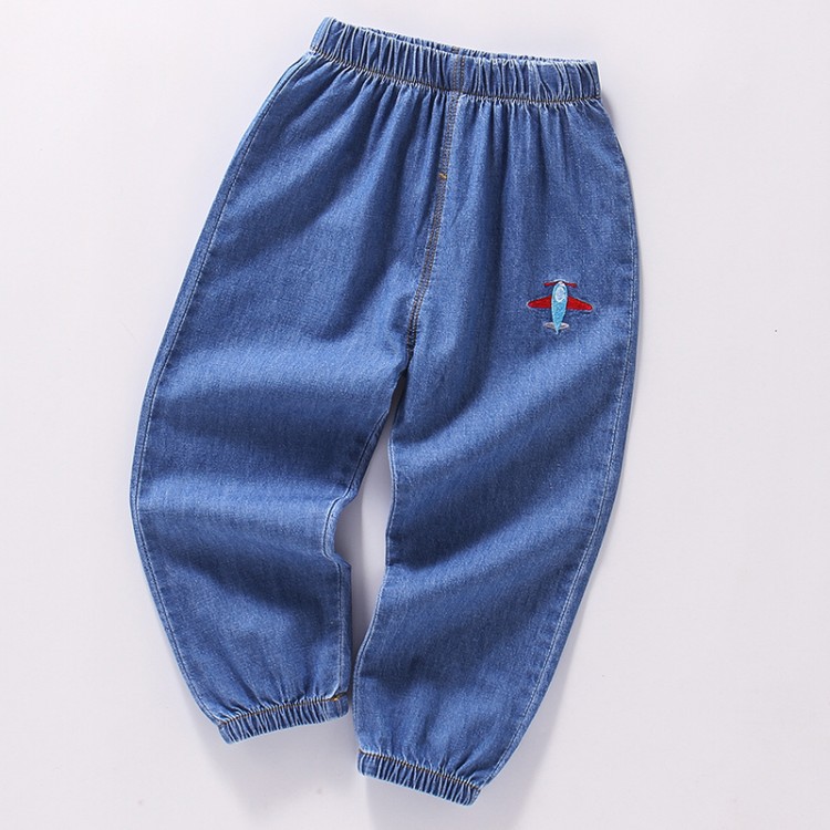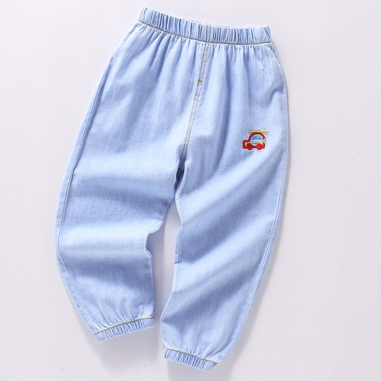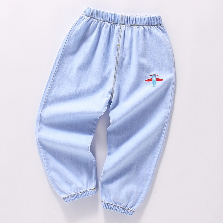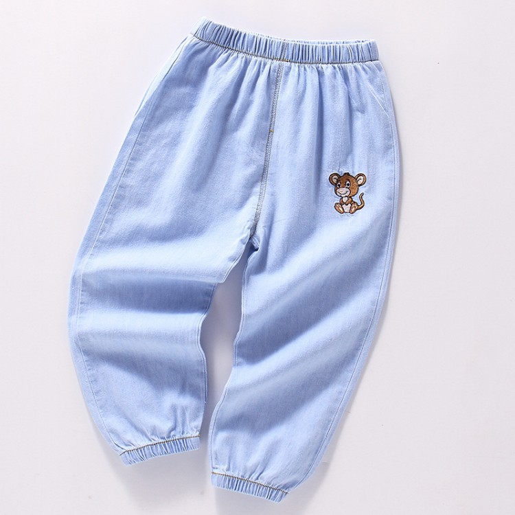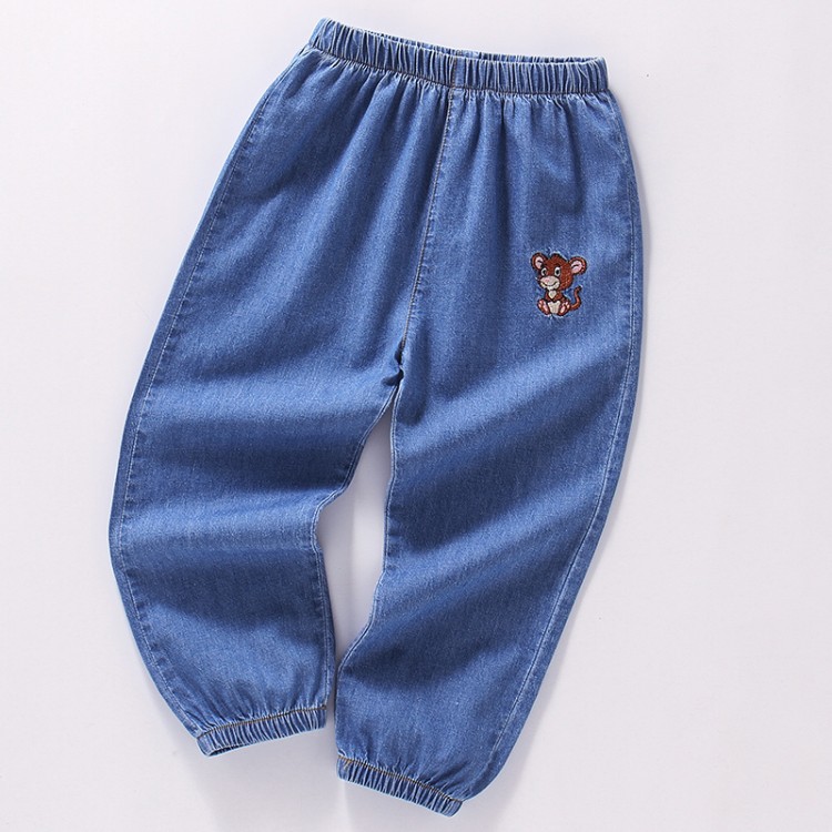 대외 무역 어린이 모기 방지 바지 2022 여름 한국 스타일 얇은 바지 소년 소녀 아기 자수 데님 모기 방지 바지
