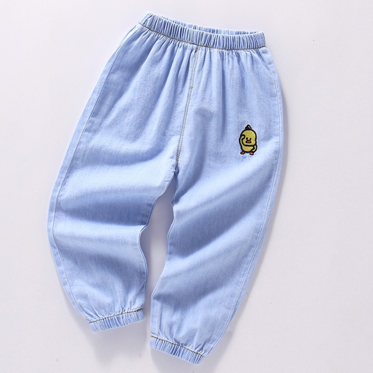 대외 무역 어린이 모기 방지 바지 2022 여름 한국 스타일 얇은 바지 소년 소녀 아기 자수 데님 모기 방지 바지스토어 가기