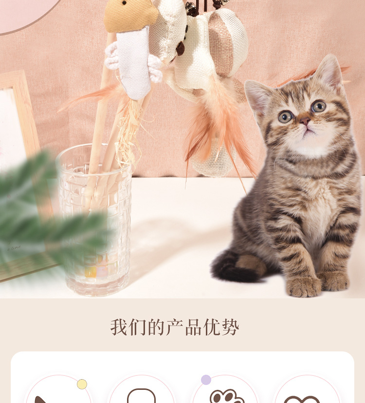 고양이 애스 스틱 도매 나무 극 마우스 고양이 애스 스틱 물린 린넨 작은 물고기 호박 공 고양이 애스 극 고양이 장난감스토어 가기