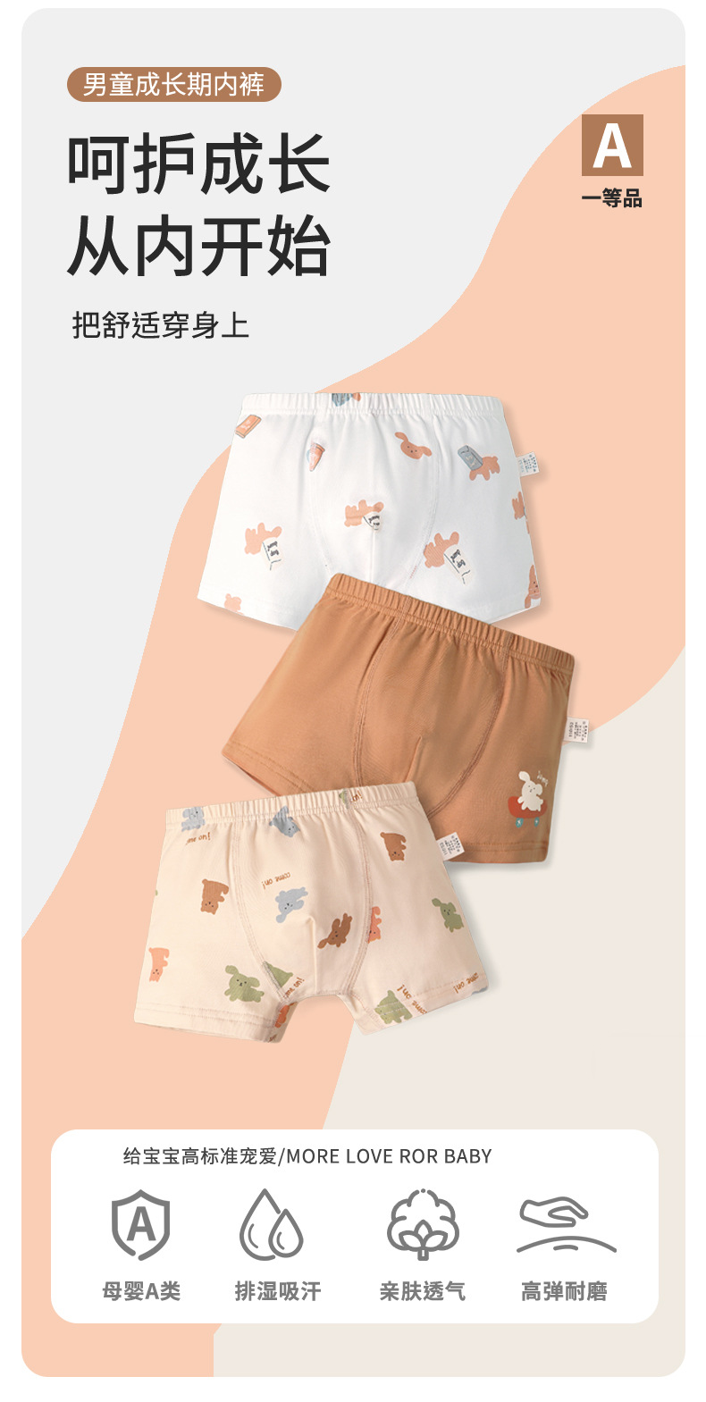 남아용 만화 캐릭터 속옷, 아동용 순면 A급 면 사각팬티, 중대형 아동용 남아용 봄여름 사각팬티스토어 가기