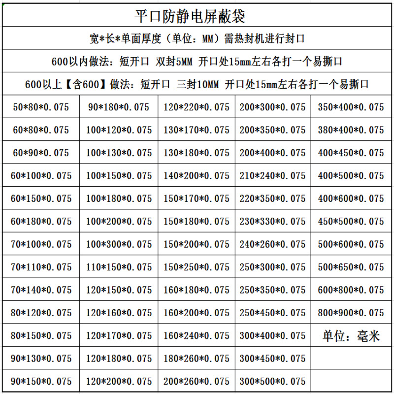 공장 직접 판매 정전기 방지 가방 플랫 입 차폐 가방 LED 라이트 스트립 칩 하드 디스크 전자 부품 포장 가방