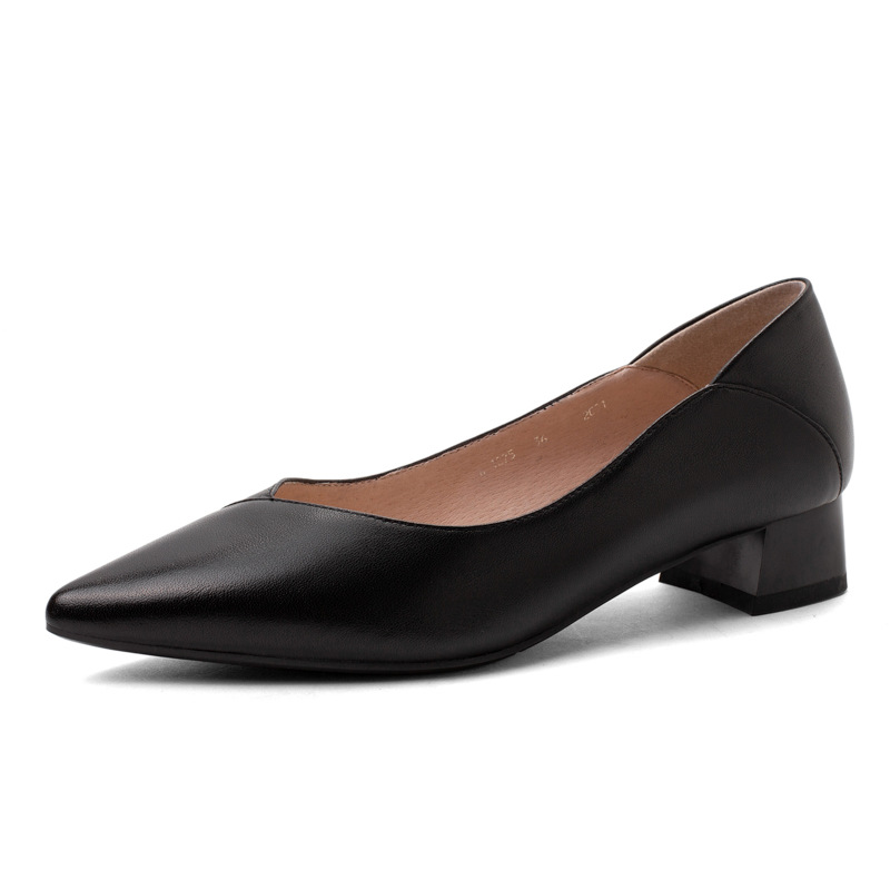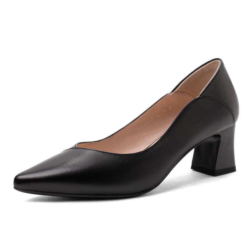 여성용 두꺼운 굽 단화, 중간 굽, 검정색, 정장용, 천연 가죽, 패셔너블하고 다재다능한, 직장용, 부드러운 밑창, 편안한, 하이힐