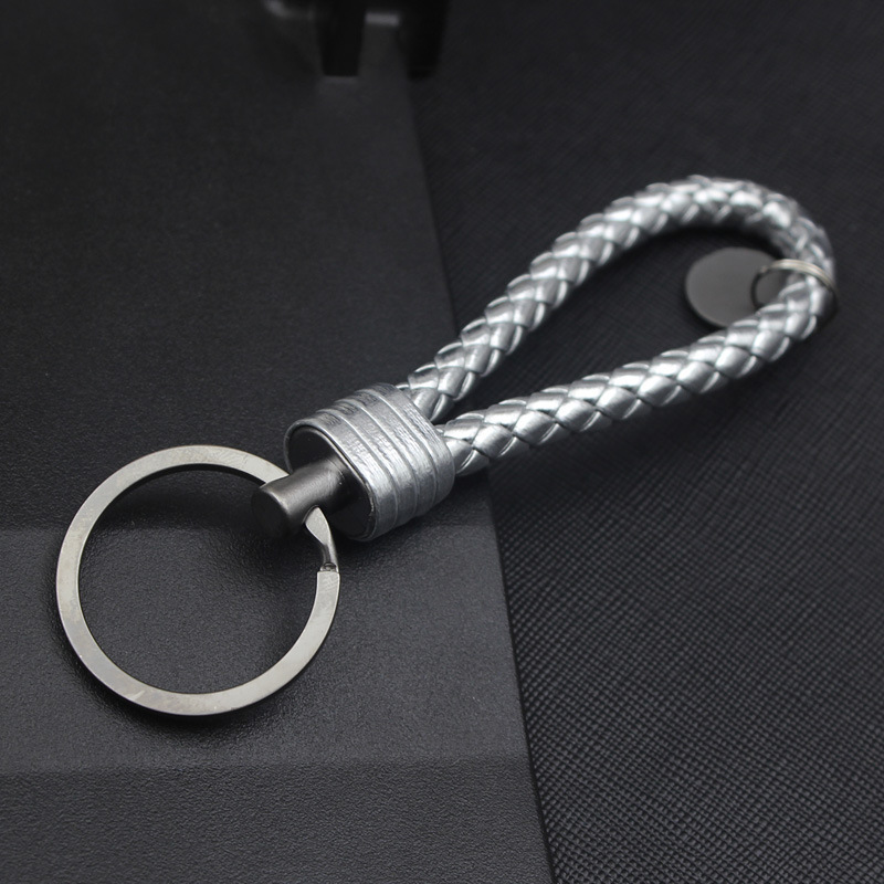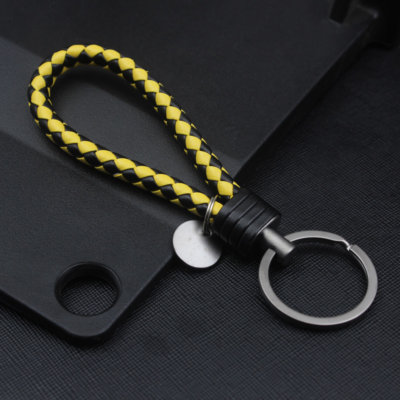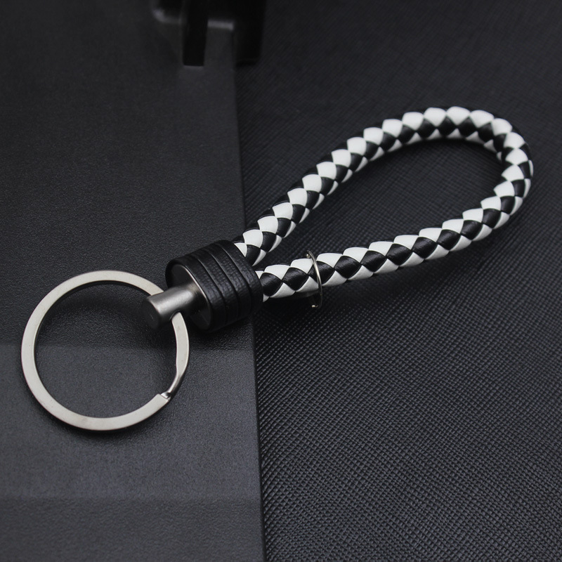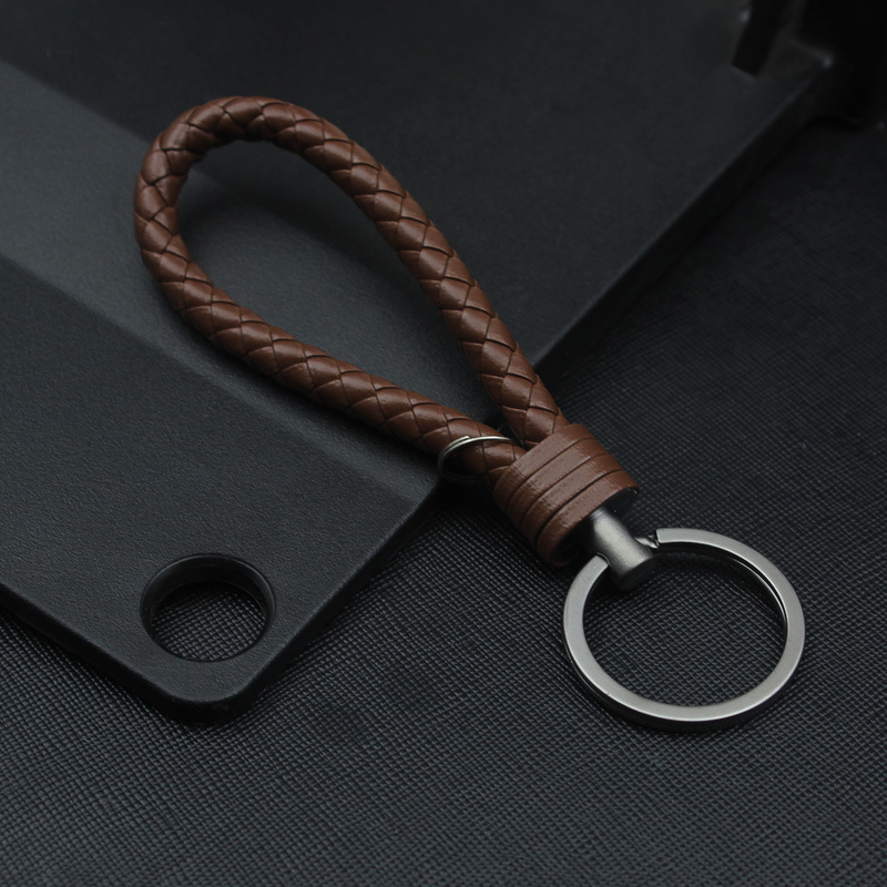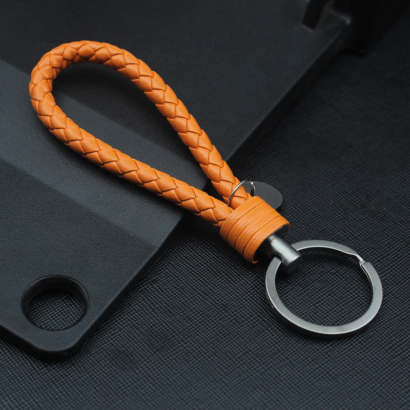 包邮钨钢简约皮绳编织绳钥匙扣圈链创意男女情侣汽车手工挂件