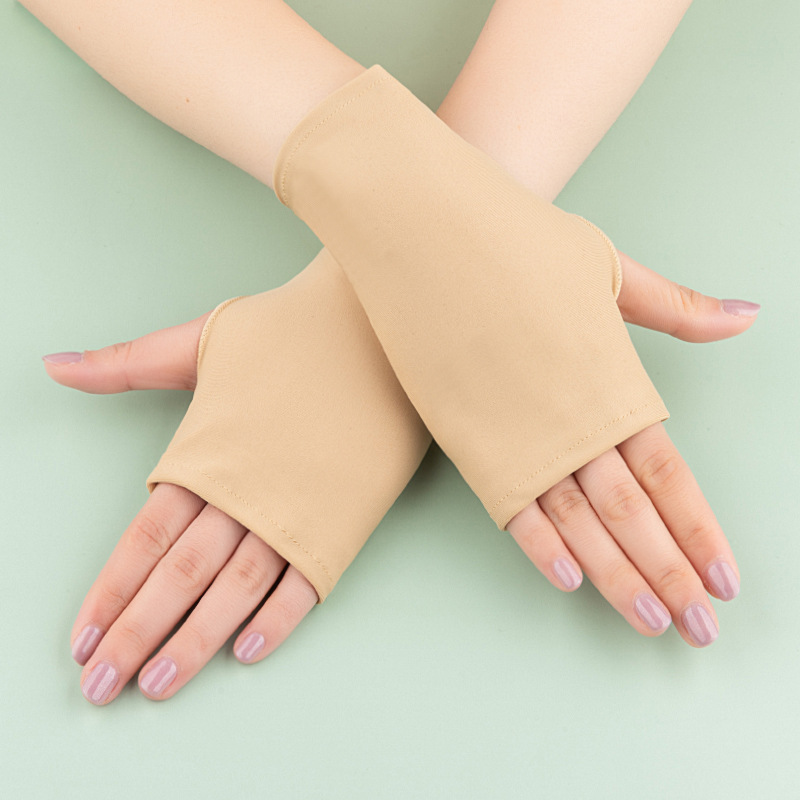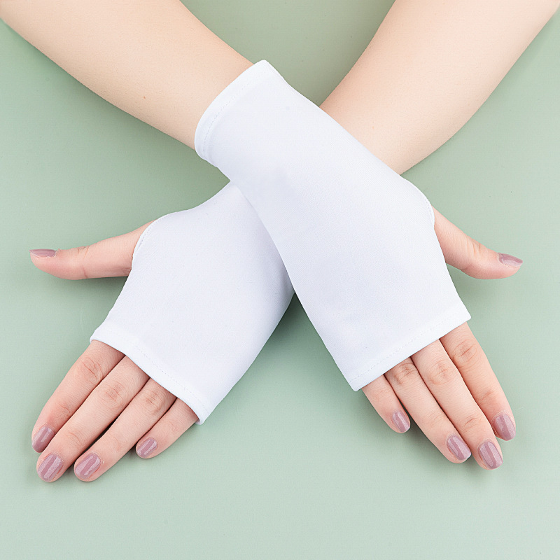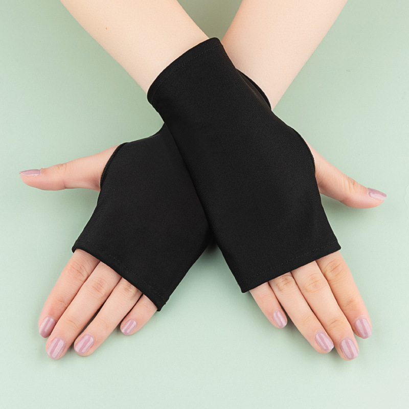 여름 얇은 여성용 라이드 안티 자외선 탄성 반 손가락 짧은 자외선 차단제 야외 차양 흉터 커버 문신 장갑