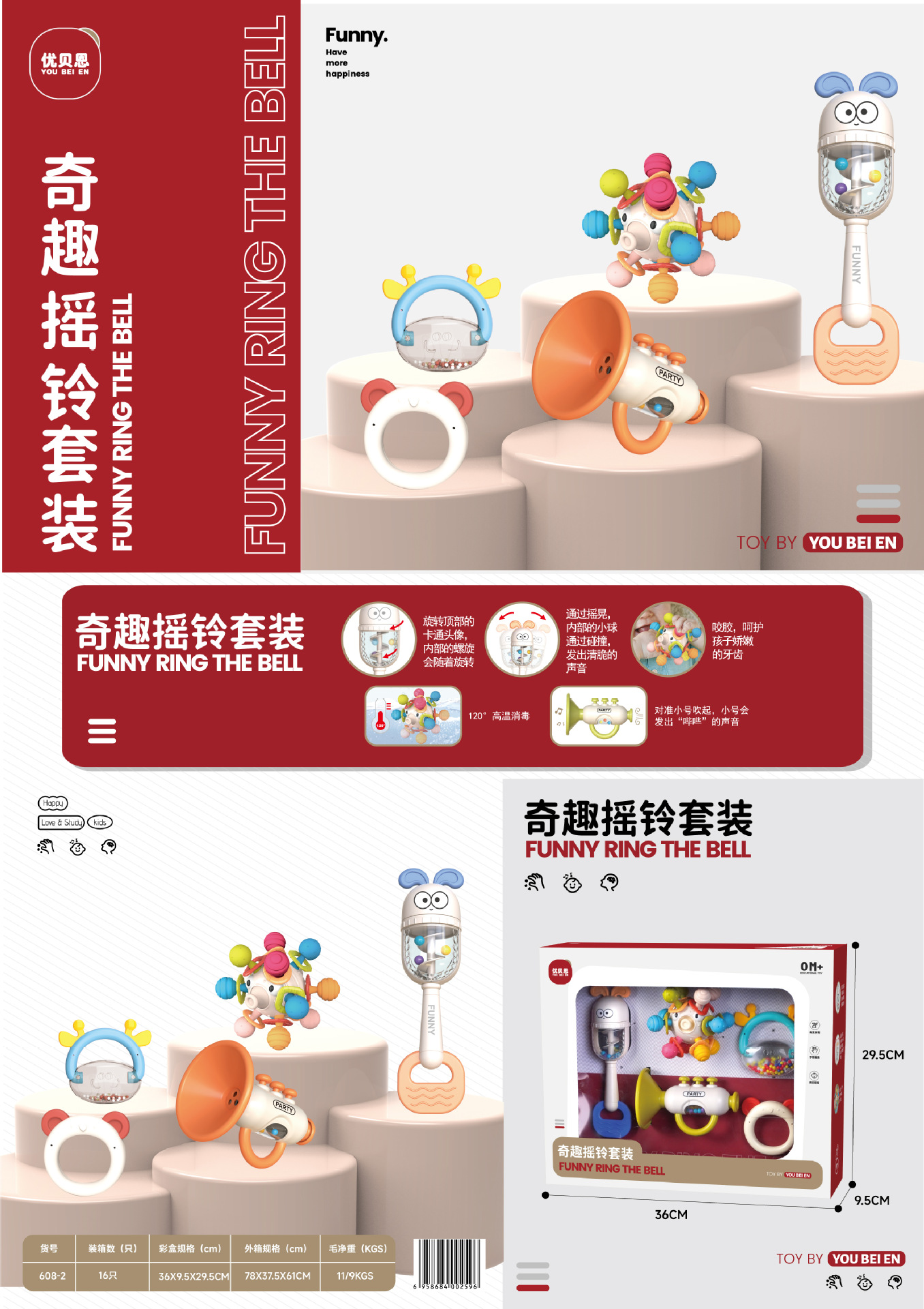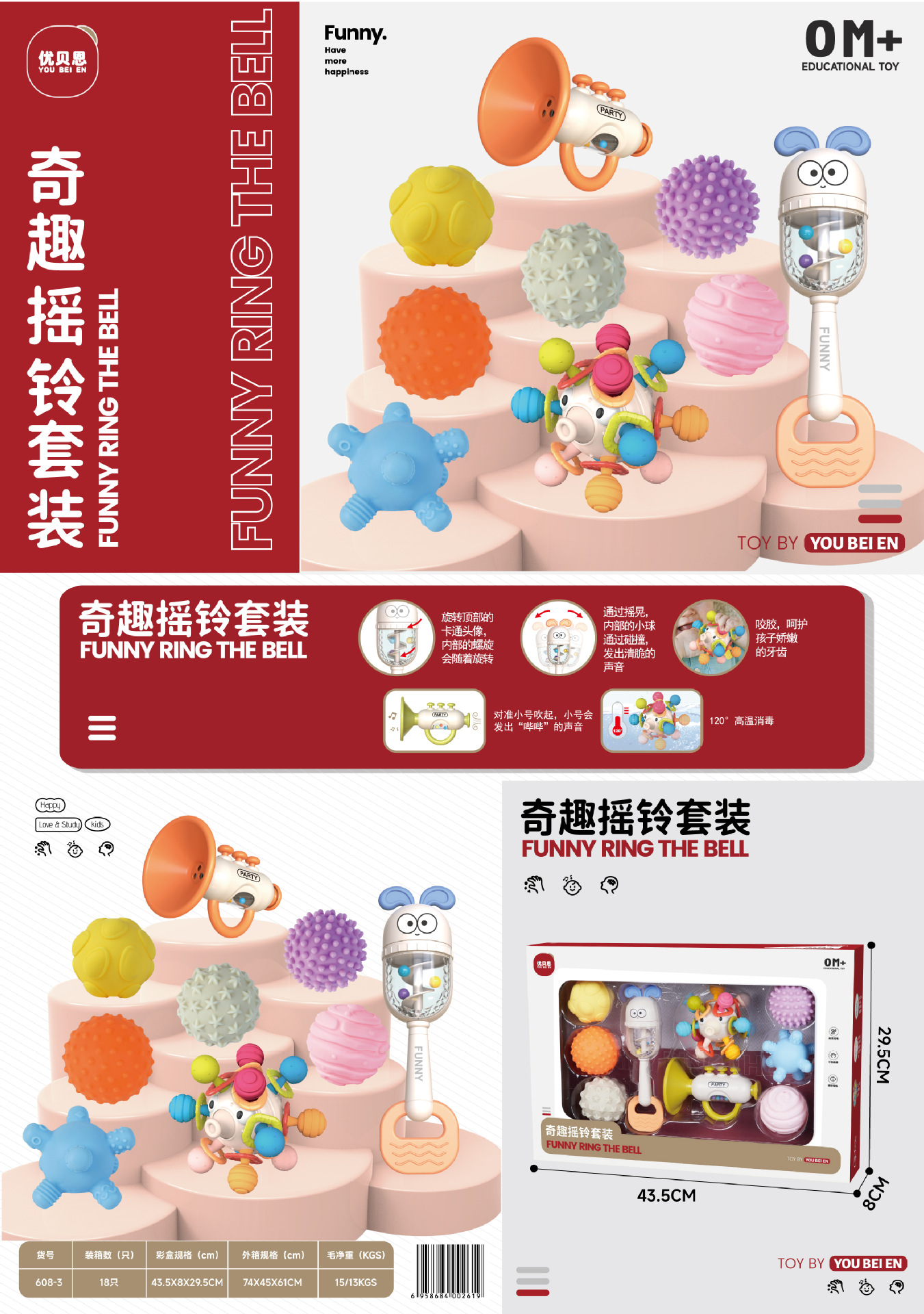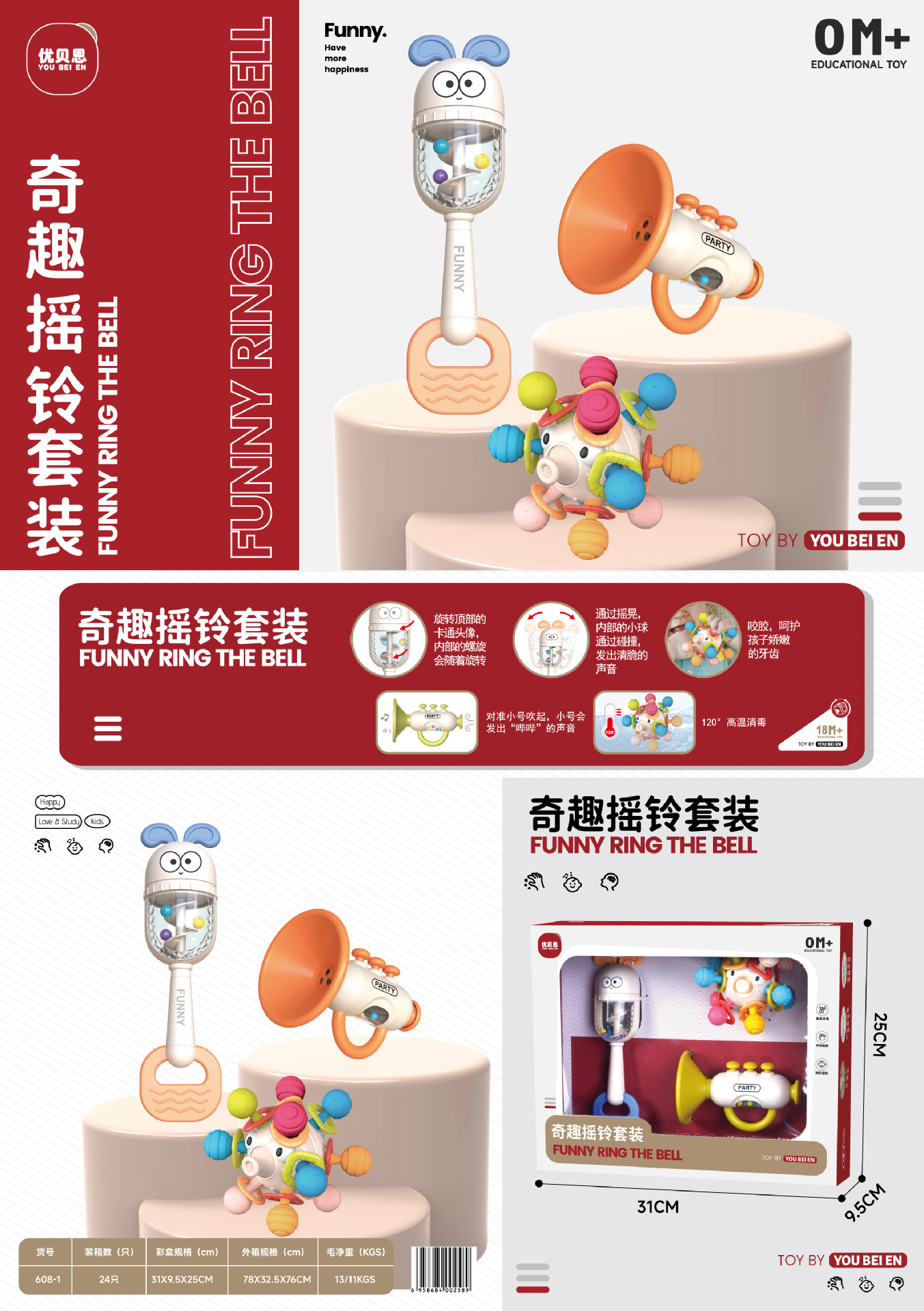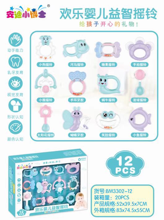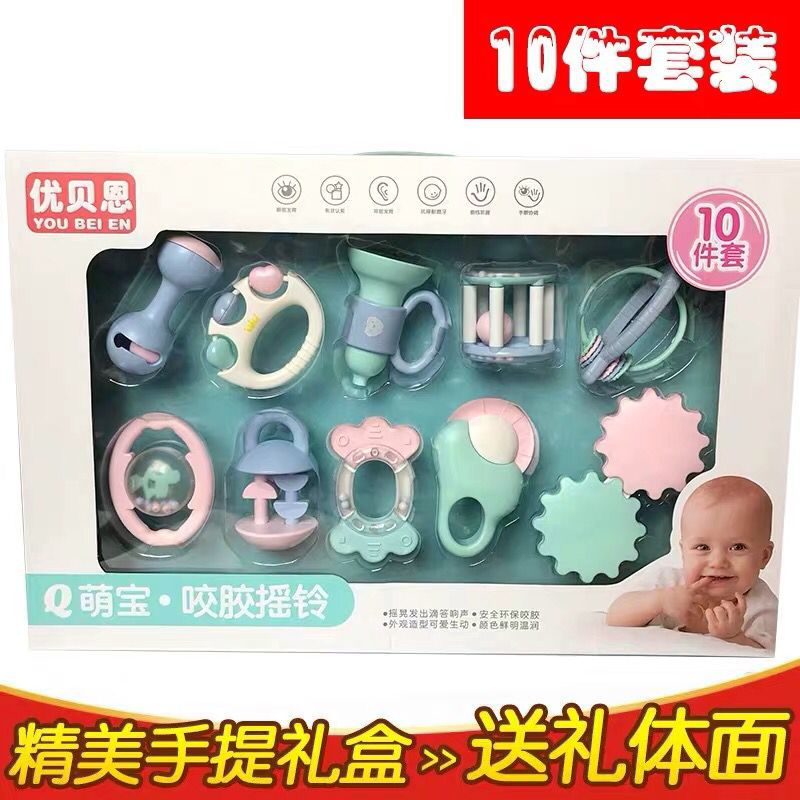 Youbain 아기는 삶은 치아 접착제 수 있습니다 10 조각 세트 딸랑이 퍼즐 아기 딸랑이 아기 교육 1-3 세스토어 가기
