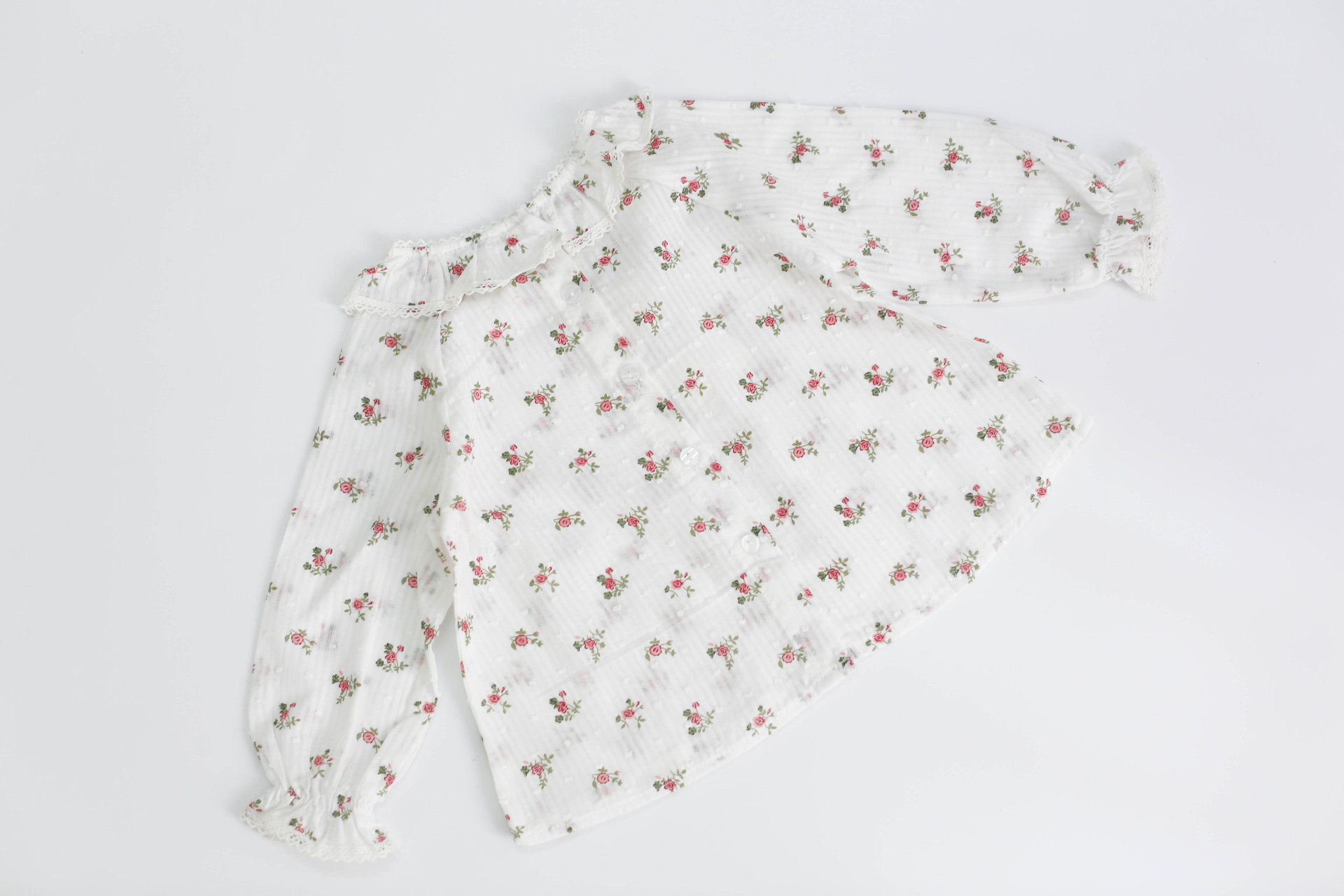 新款韩版女婴打底衫女童印花荷叶领提花娃娃衫棉布提花衬衫衬衣