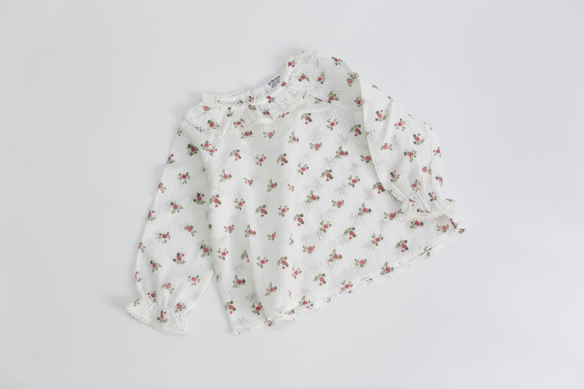 새로운 한국 스타일 아기 소녀 베이스 셔츠 소녀 인쇄 로터스 칼라 자카드 인형 셔츠 면 자카드 셔츠스토어 가기