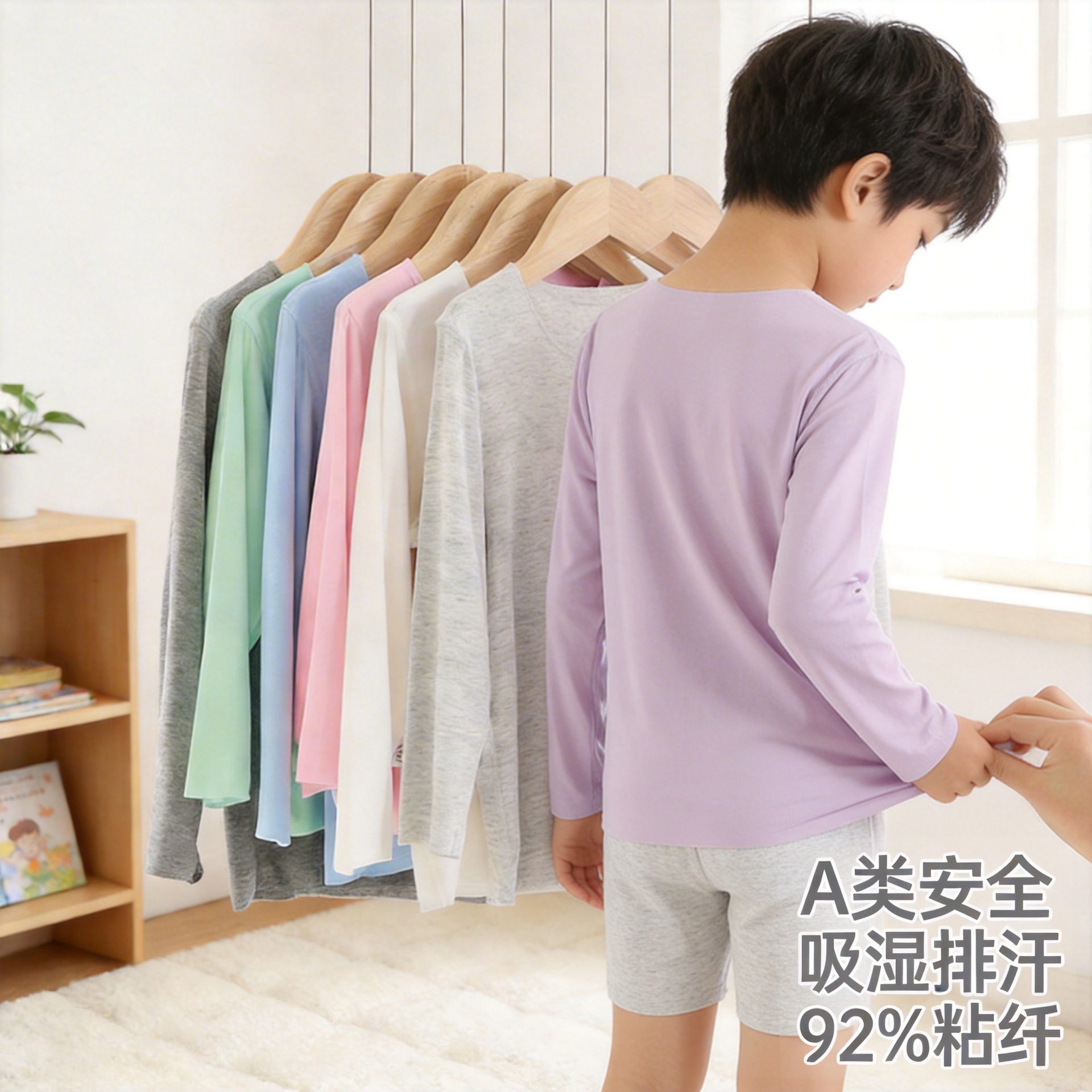 아동용 긴팔 셔츠, 중대형 아동용 베이스 레이어 셔츠, 라운드넥, 여름용, 에어컨이 있는 방에서 입기 좋은, 단색 이너웨어, 가정용, 얇은 상의, 유아용스토어 가기