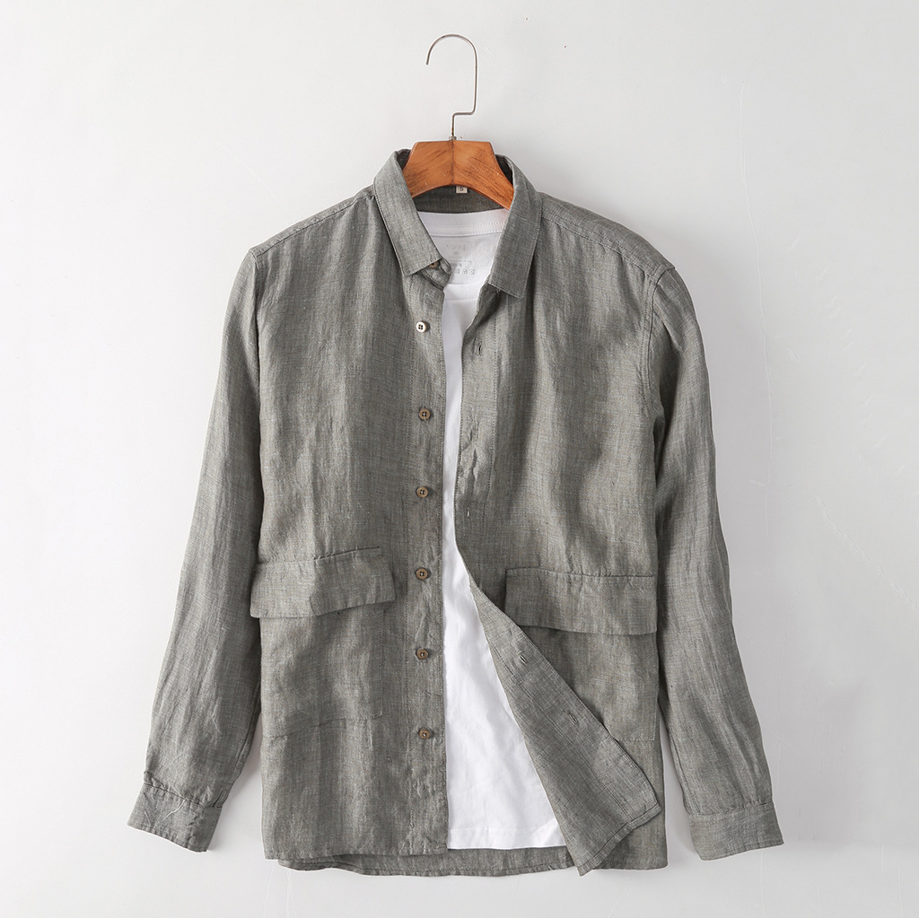 2024 봄, 가을 린넨 남성 심플 캐주얼 린넨 자켓 루즈 긴팔 린넨 셔츠 C039