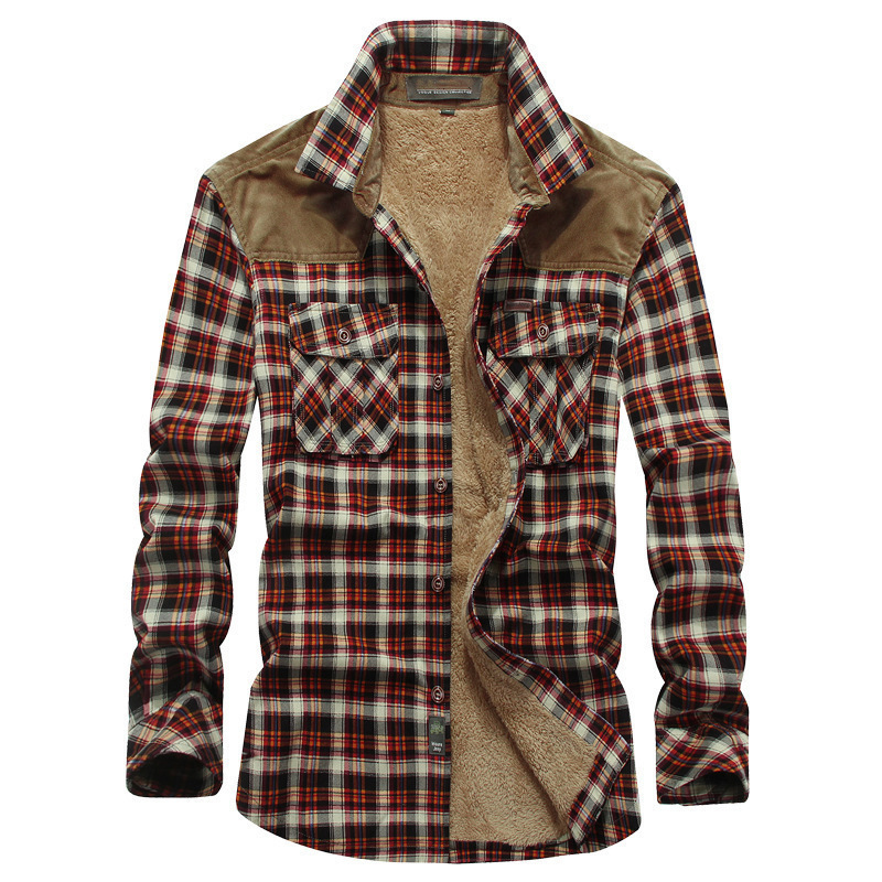 크로스 보더 겨울 새로운 남자의 기모 긴팔 격자 무늬 셔츠 따뜻한 비즈니스 캐주얼 패션 면 셔츠 유럽 크기스토어 가기