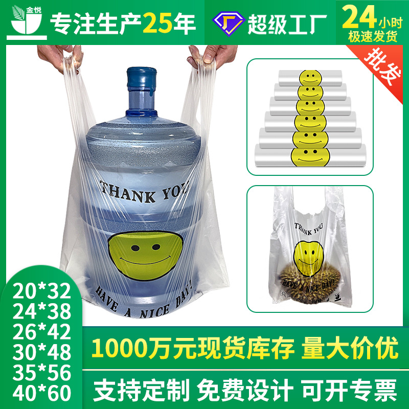 재고 도매 투명 조끼 스마일 페이스 백 슈퍼마켓 쇼핑백 과일 포장 비닐 봉투 테이크 아웃 포장 가방