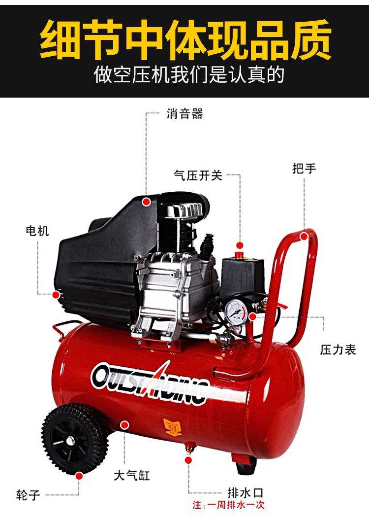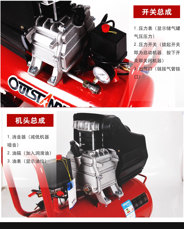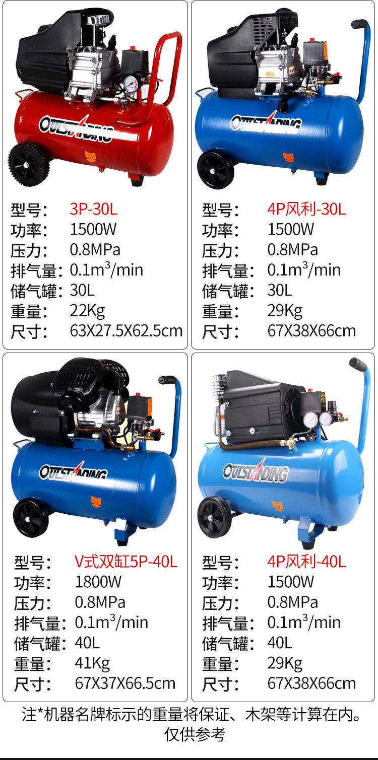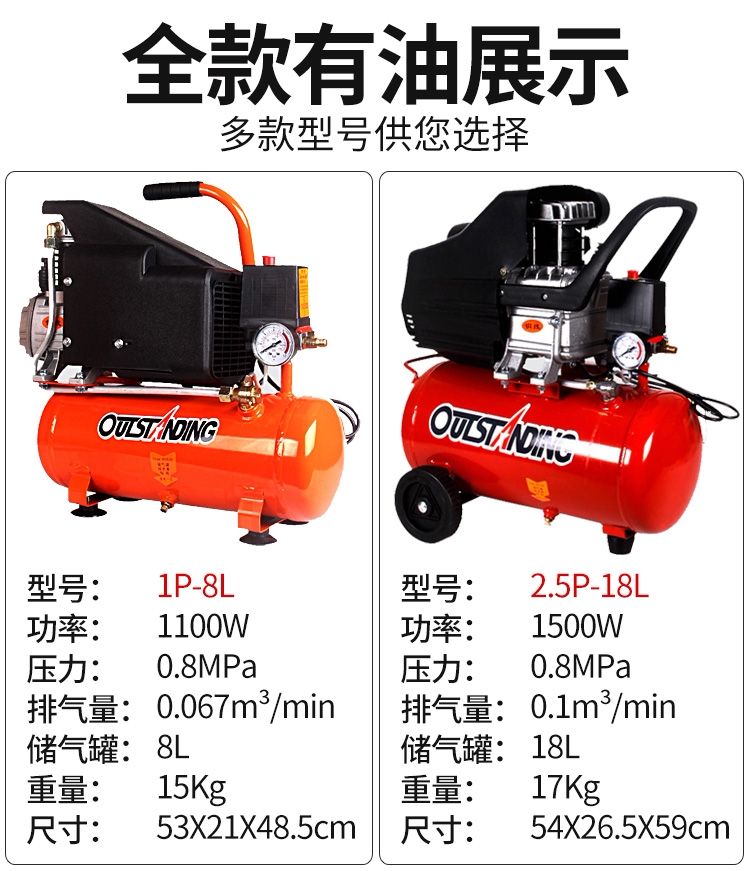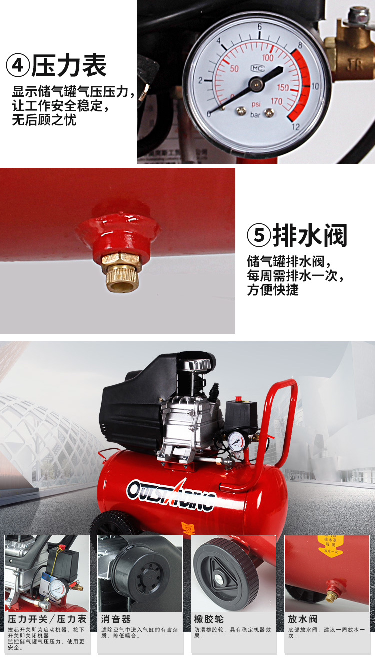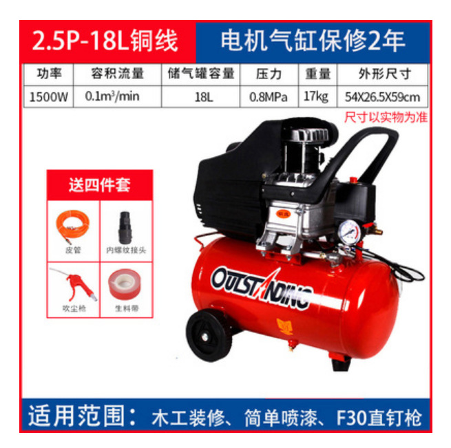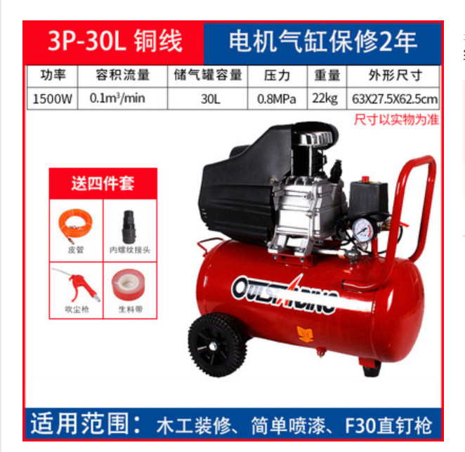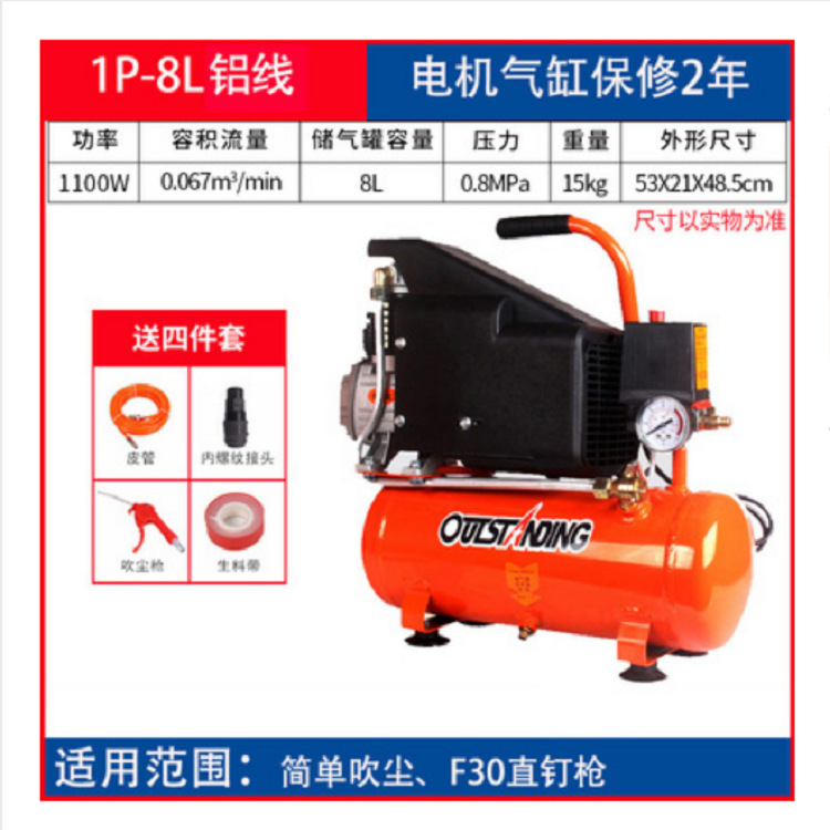 오투스 고압 공기 압축기 소형 오일 및 공기 펌프 네일 건 스프레이 건 220V 휴대용 압축기 3p 목공