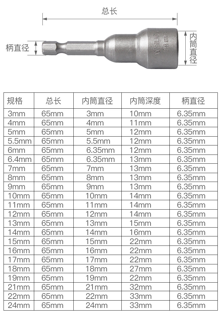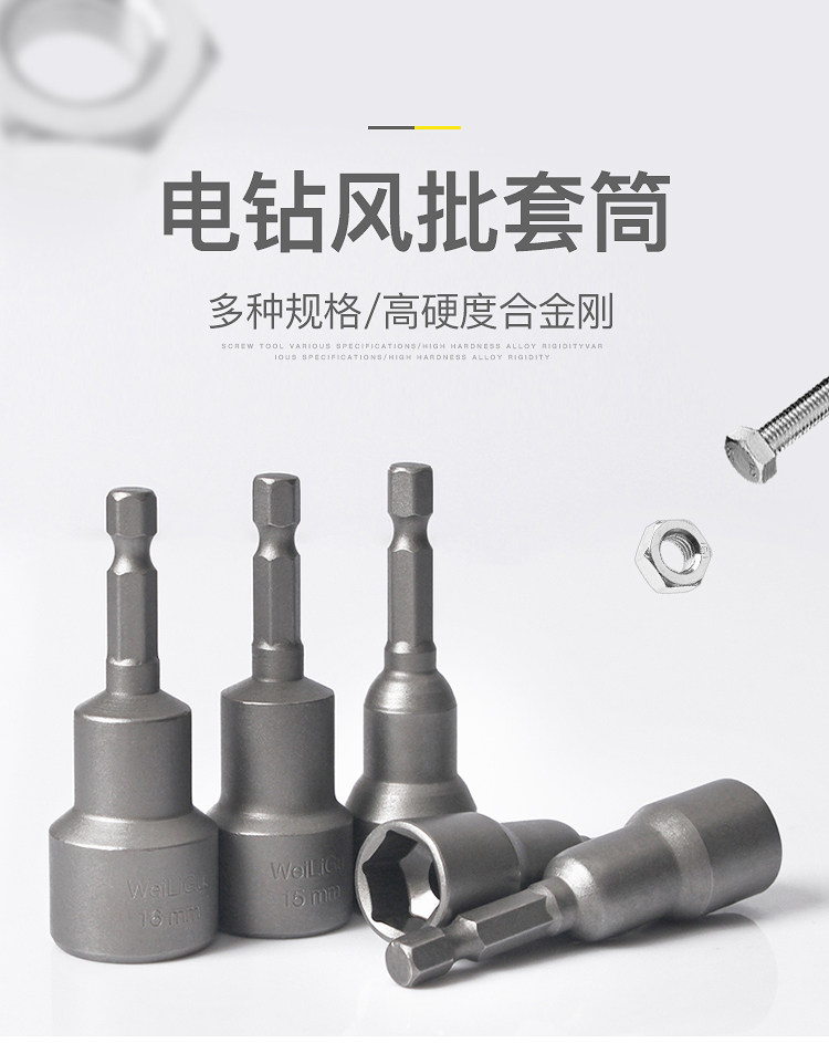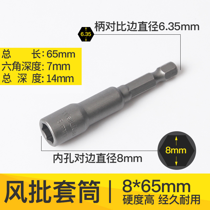 WEILIGU 육각형 소켓 헤드 전기 렌치 소켓 헤드 세트 비 자기 65 길이 14 13 10mm8스토어 가기
