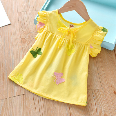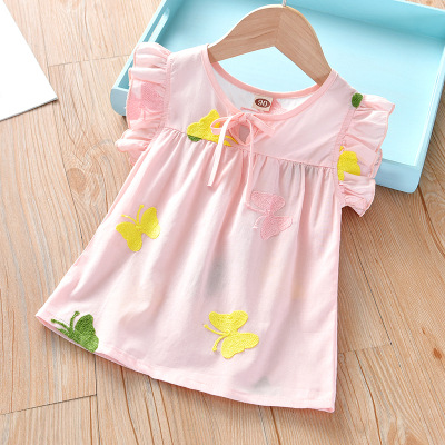 여자 여름 티셔츠 중소 어린이 면화 2025 새로운 한국 스타일 자수 탑 멋진 아기 인형 셔츠