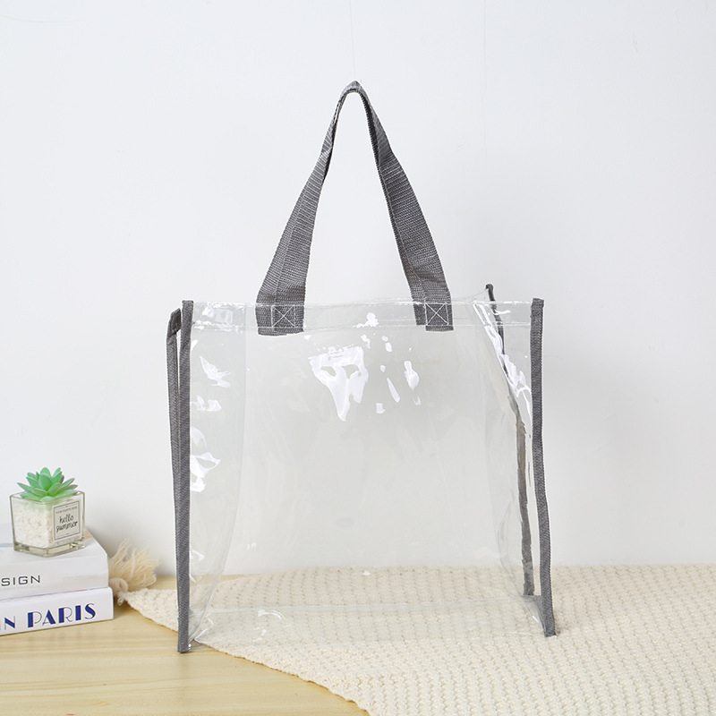 컬러 인쇄 투명 재고 pvc 핸드백 선물 쇼핑백 인쇄 플라스틱 젤리 가방 핸드 백 인쇄 로고