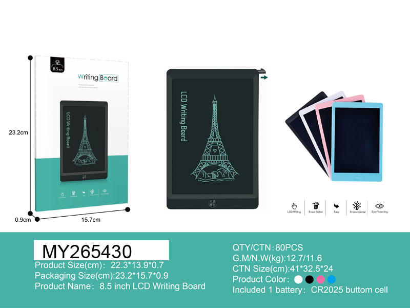 【产品名称】:8.5寸液晶写字板(粗笔迹)包电带笔