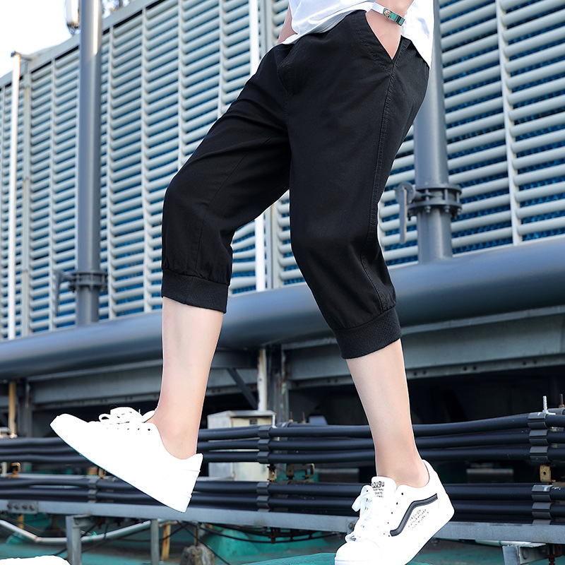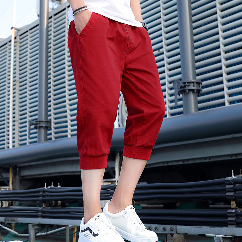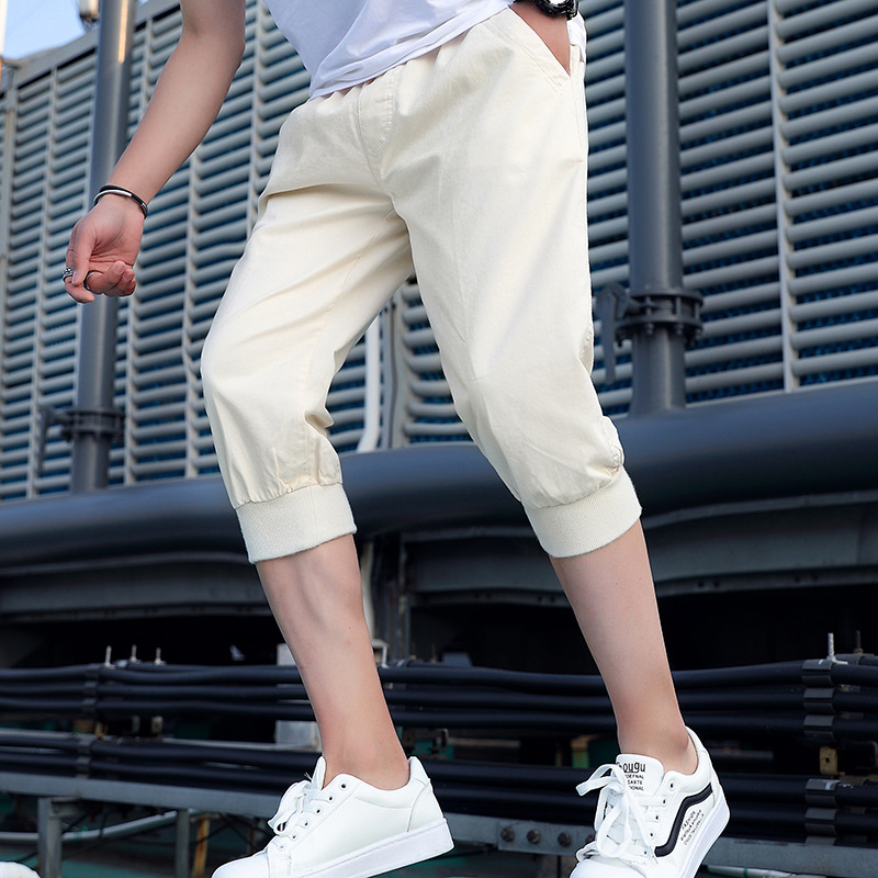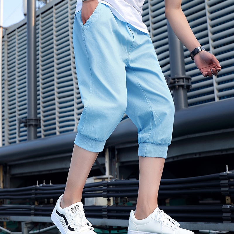 대외 무역 남자의 여름 단색 스레드 허리 크롭 캐주얼 반바지 청소년과 학생을위한 유행 반바지 하렘 반바지스토어 가기