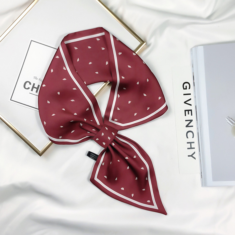 한국 동대문 뉴 웨이브 도트 실크 스카프 장식 벨트 버클 작은 실크 스카프 넥타이 헤어 벨트 봄 모조 실크 작은 스카프