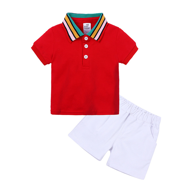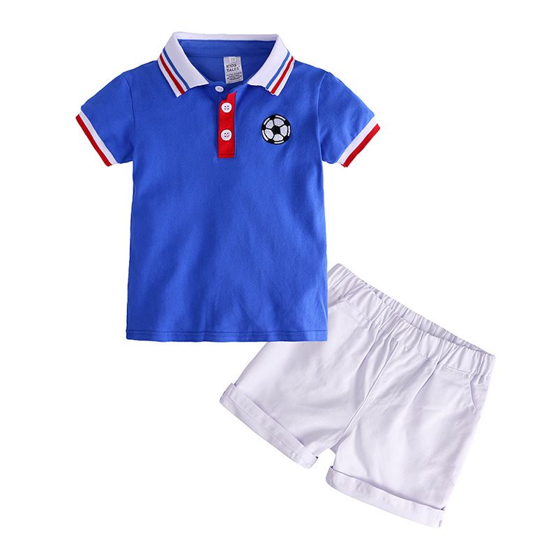 【款式】:童装夏新款棉运动两件套ins款外贸男童翻领足球短袖套装