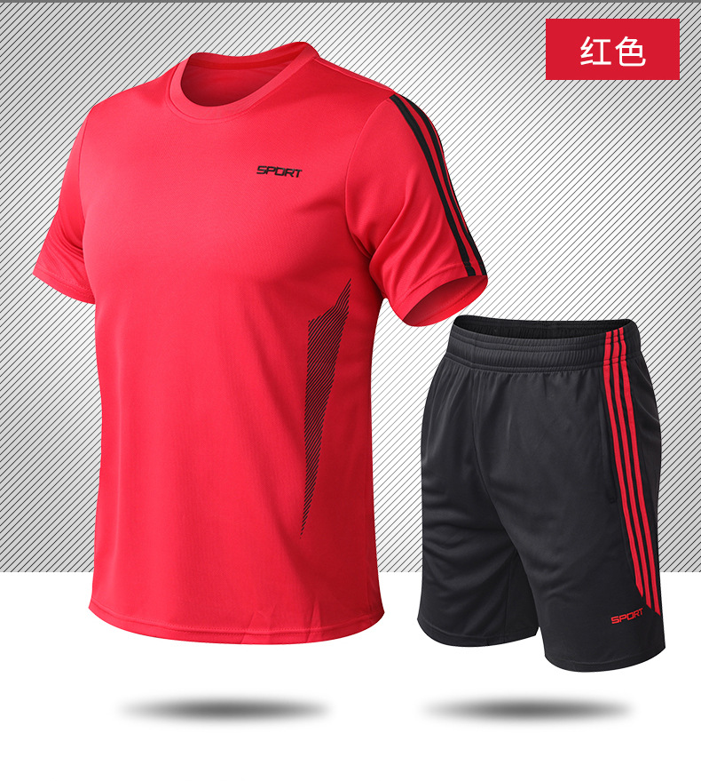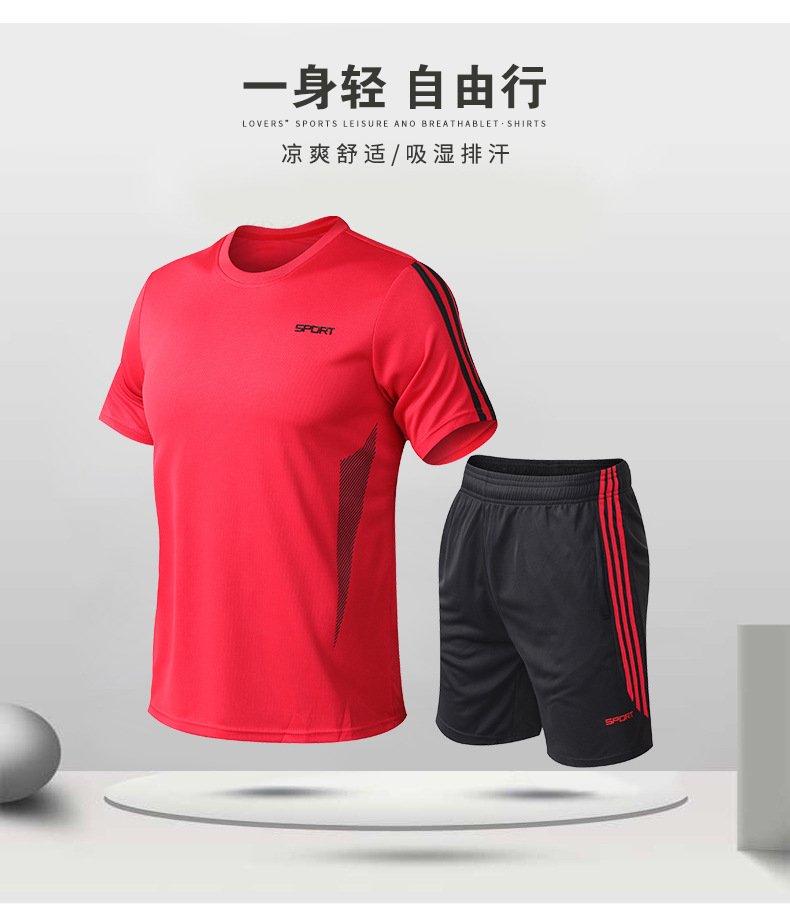 스포츠 세트 남자의 여름 피트니스 반팔 남자의 속건성 옷 실행 느슨한 레저 스포츠웨어 플러스 사이즈 L209 운송스토어 가기