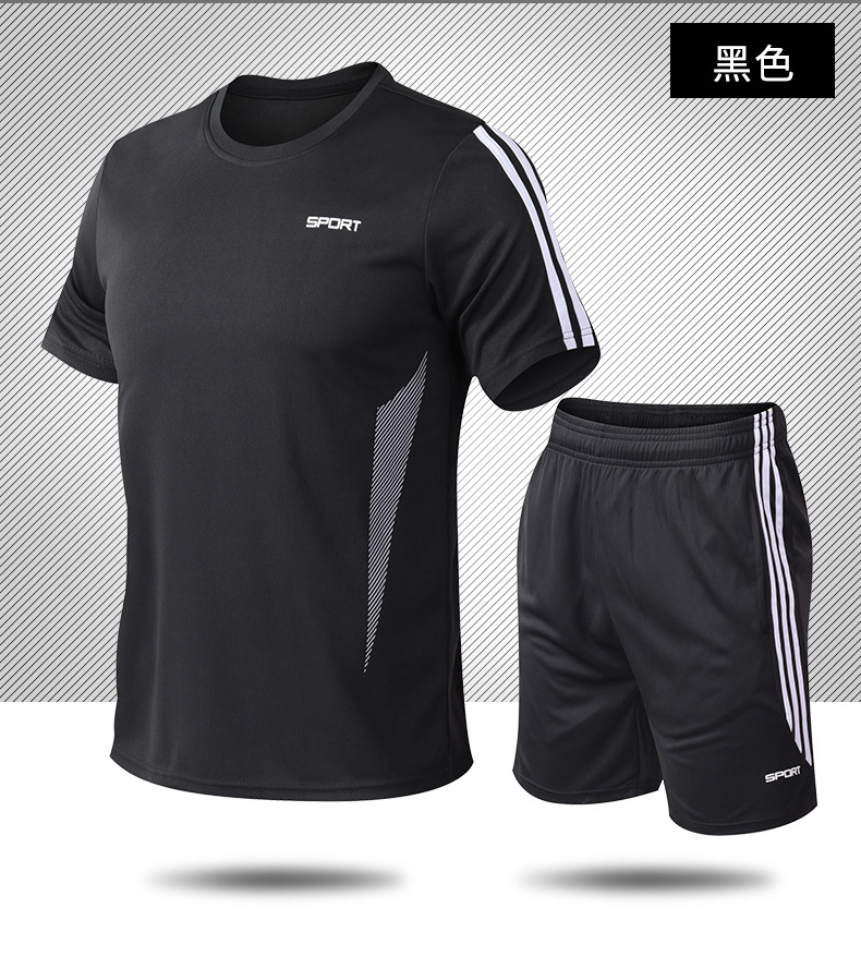 스포츠 세트 남자의 여름 피트니스 반팔 남자의 속건성 옷 실행 느슨한 레저 스포츠웨어 플러스 사이즈 L209 운송