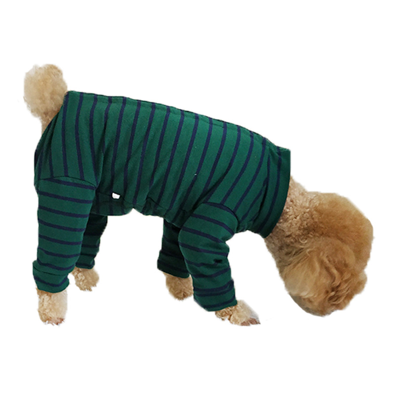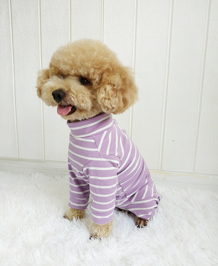 봄과 여름 개 하이 칼라 네 다리 옷 순면 배꼽 보호 배꼽 줄무늬 확장 다리 살균 이유 옷 방진