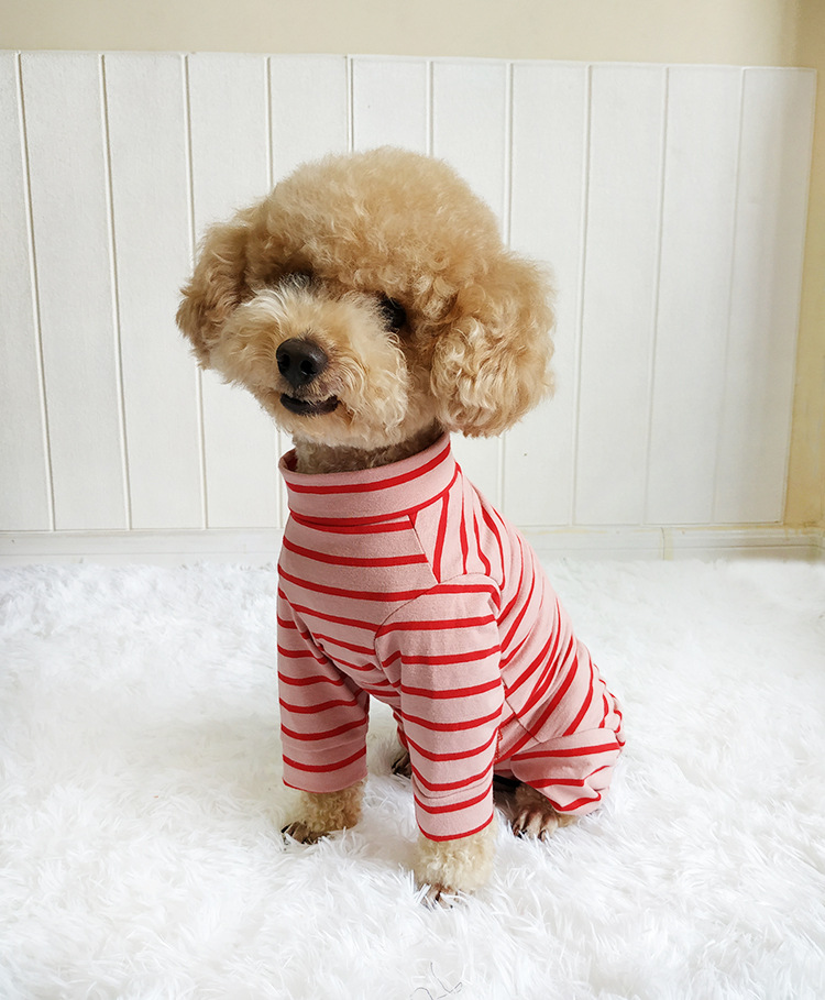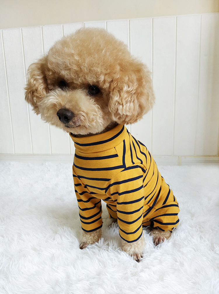 봄과 여름 개 하이 칼라 네 다리 옷 순면 배꼽 보호 배꼽 줄무늬 확장 다리 살균 이유 옷 방진스토어 가기