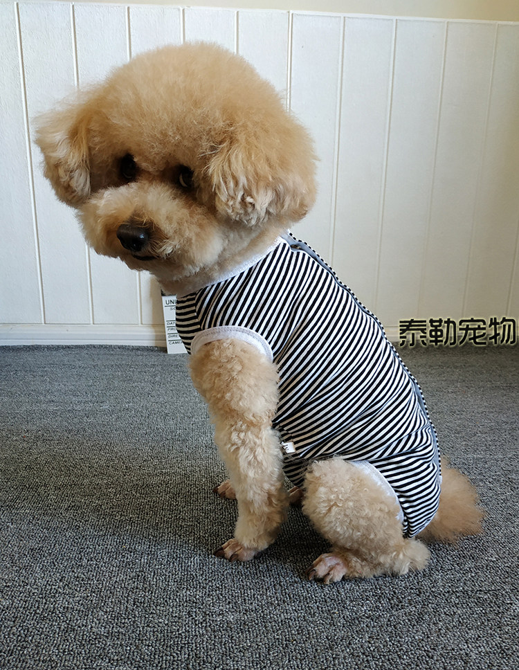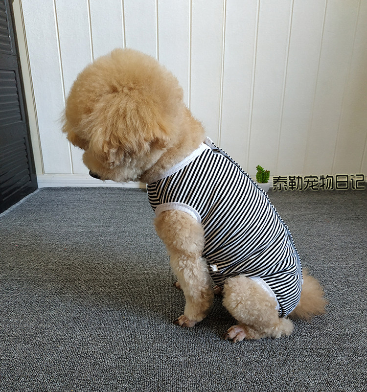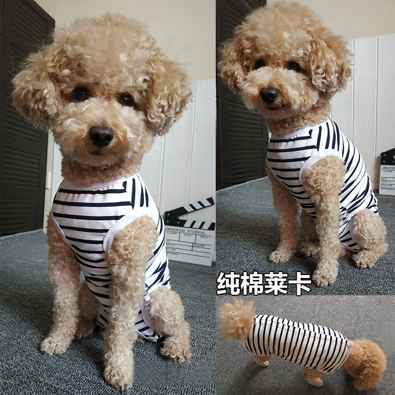 개 의류 가정 의류 순면 줄무늬 통기성 가방 배꼽 보호 네 발 조끼 여성 개 살균 및 소변 방지