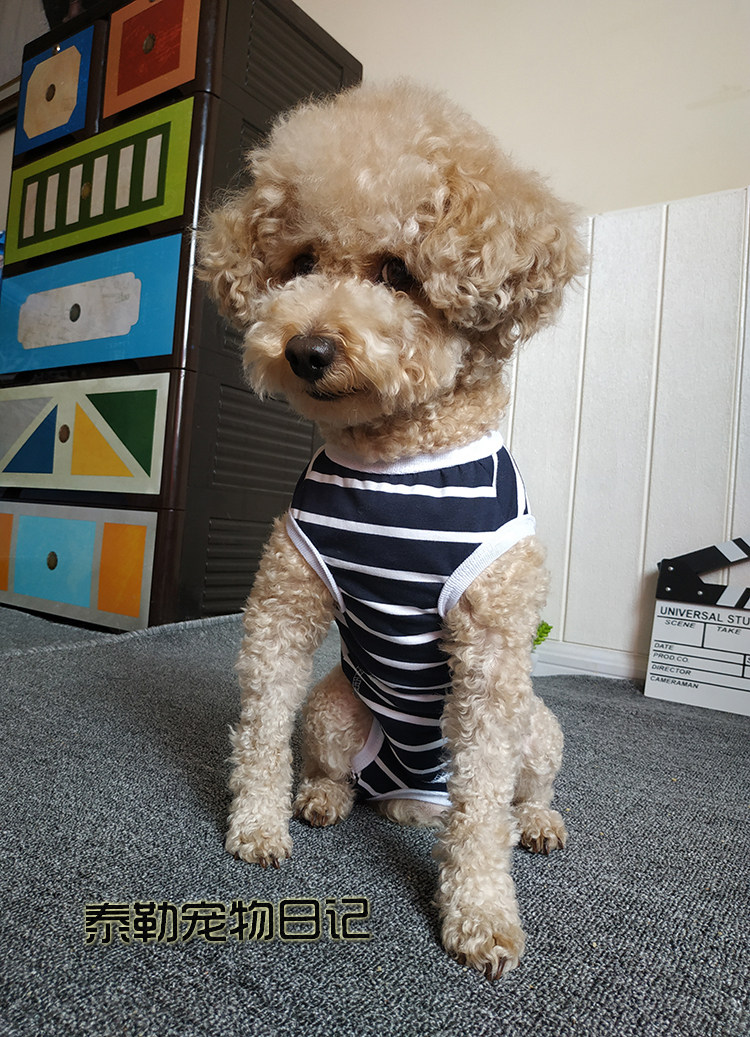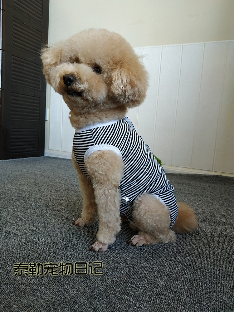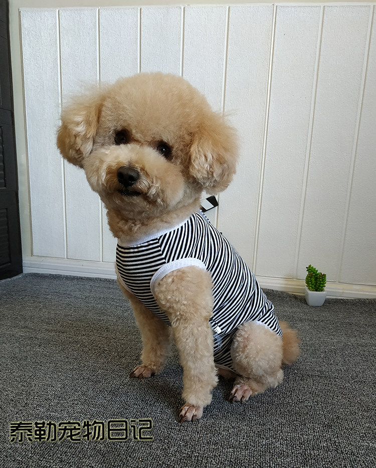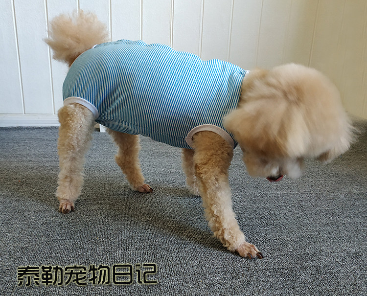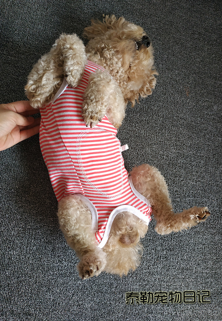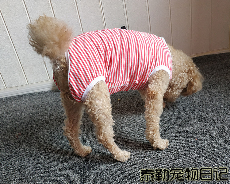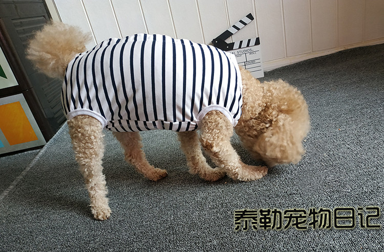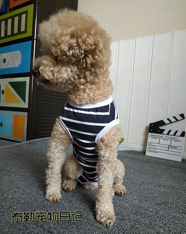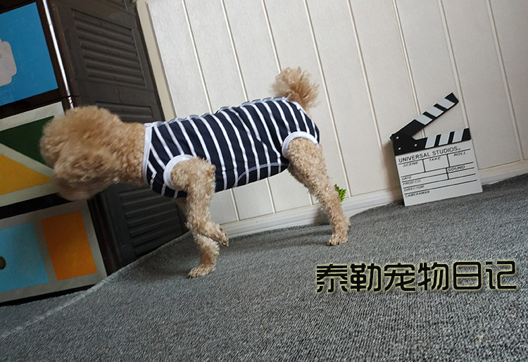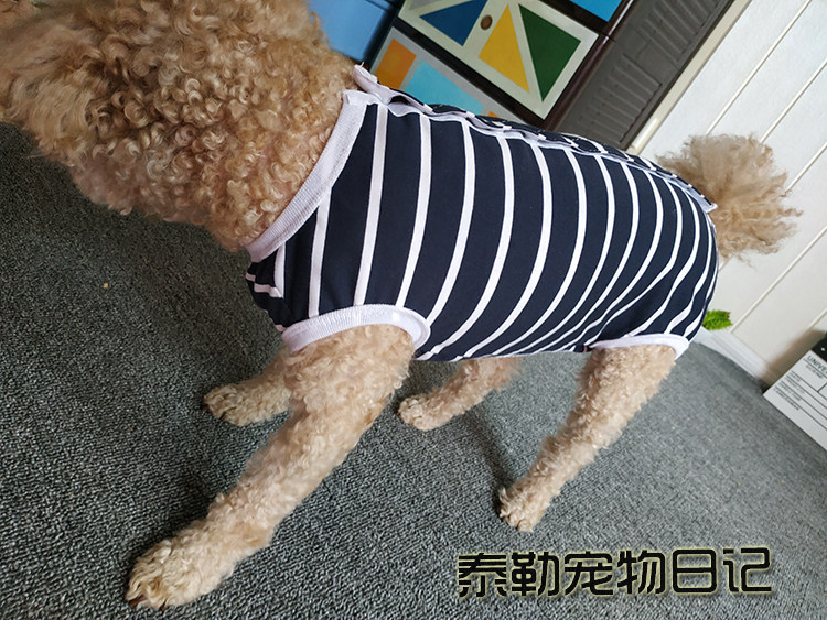 개 의류 가정 의류 순면 줄무늬 통기성 가방 배꼽 보호 네 발 조끼 여성 개 살균 및 소변 방지스토어 가기