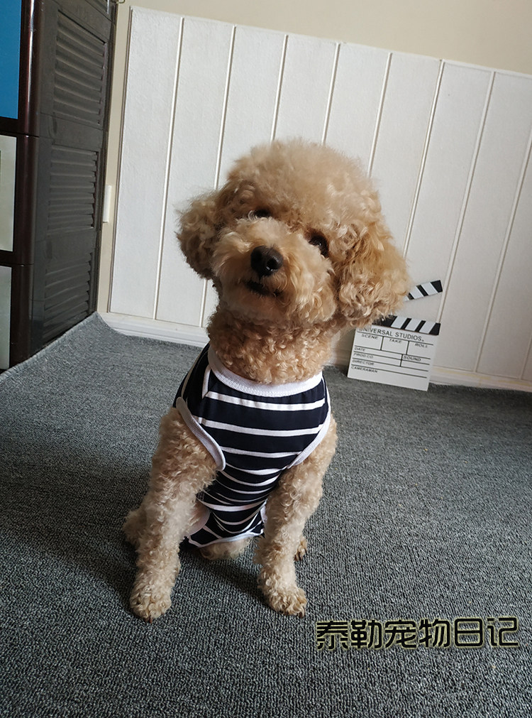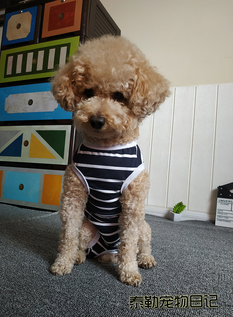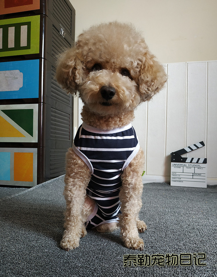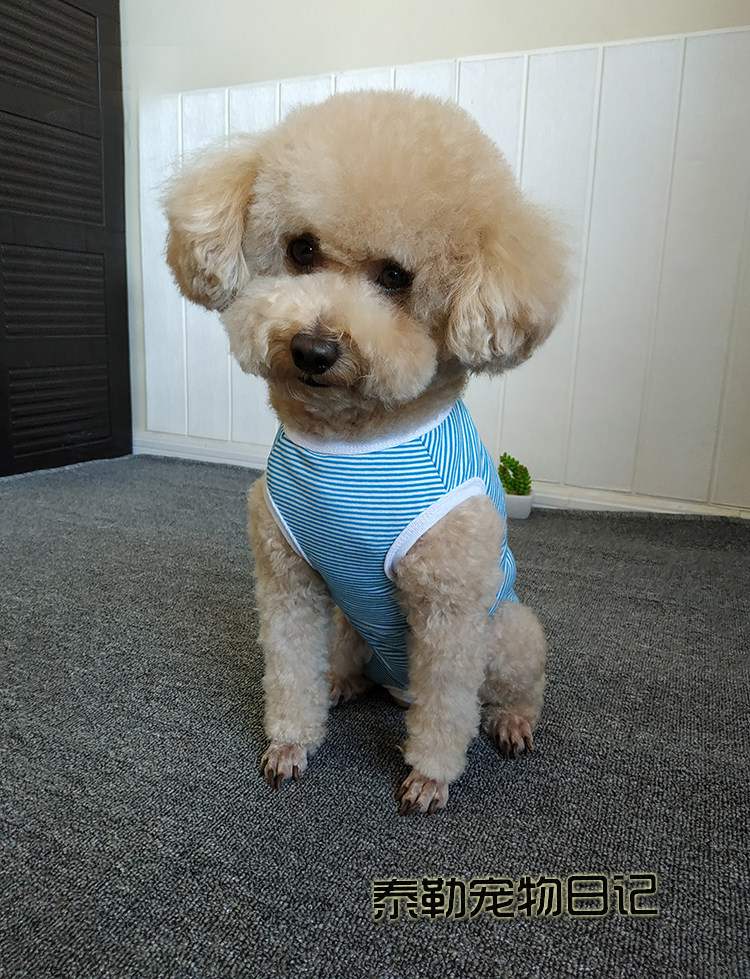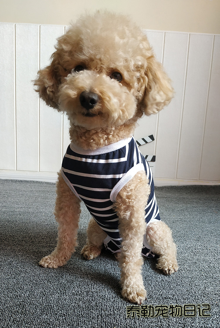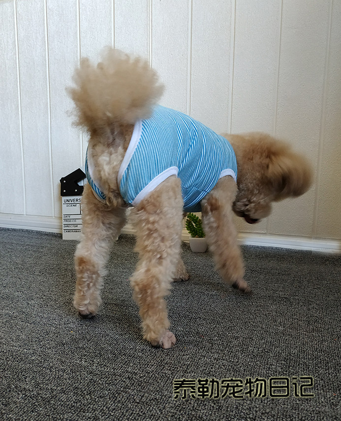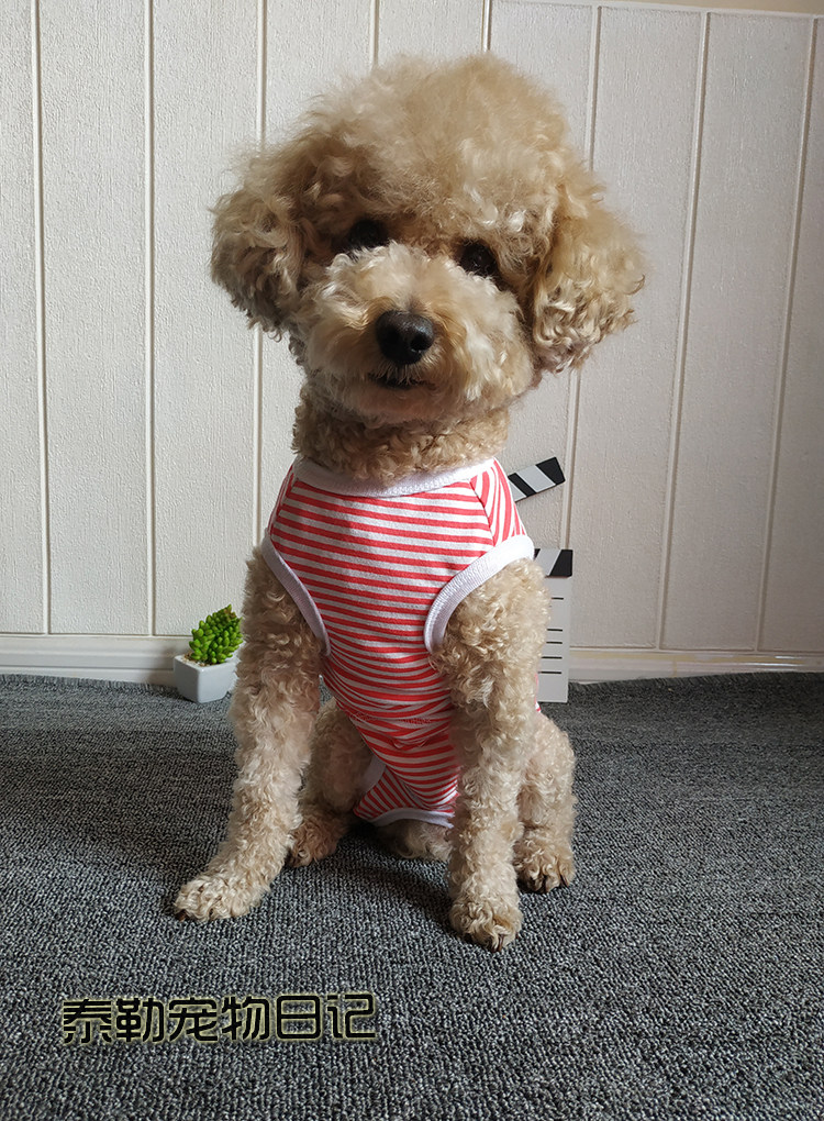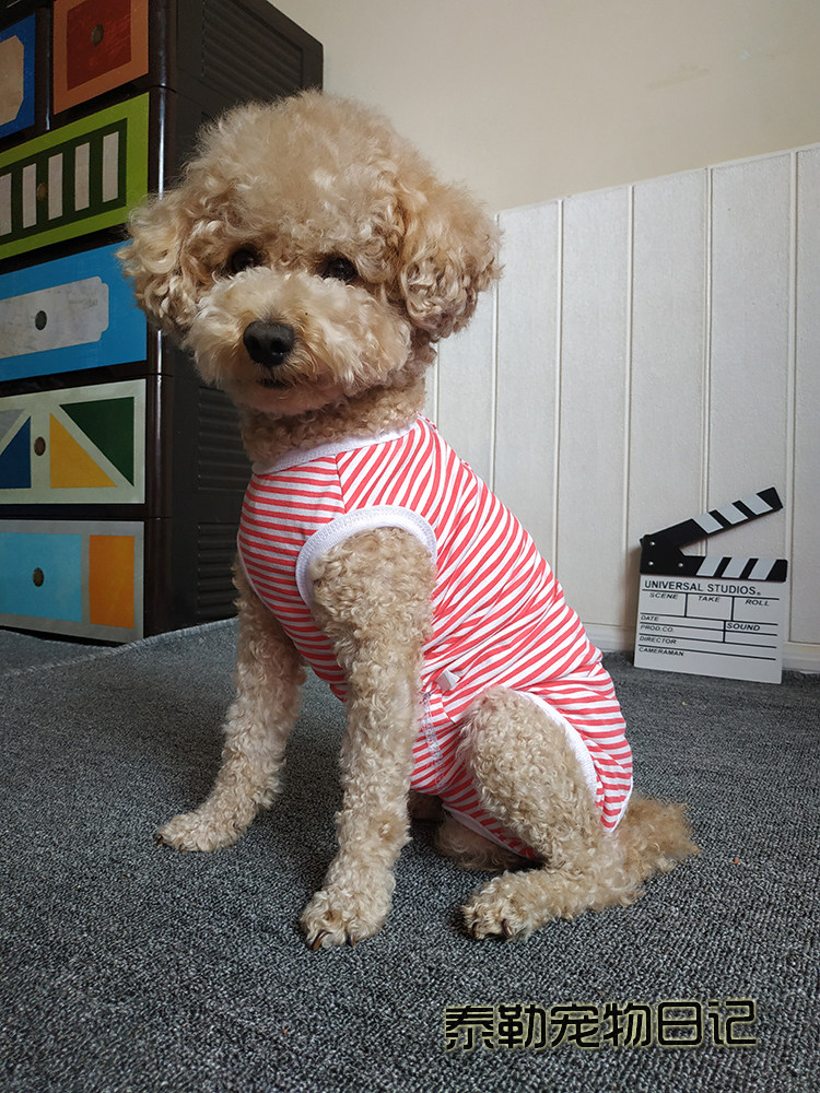 개 의류 가정 의류 순면 줄무늬 통기성 가방 배꼽 보호 네 발 조끼 여성 개 살균 및 소변 방지스토어 가기