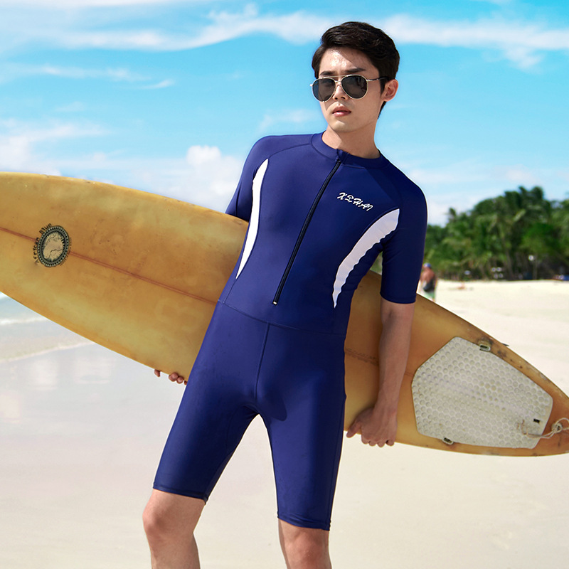 원피스 수영복 남성용 반팔 5 점 바지 수영 세트 전신 태양 방지 긴 소매 바지 전문 훈련 다이빙 세트