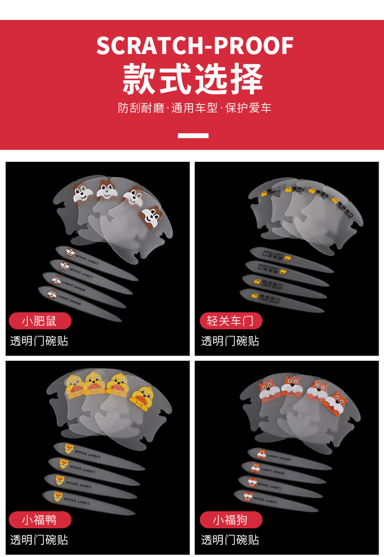 새로운 자동차 도어 그릇 스티커, 만화 핸들 스티커, 외부 장식 수정, 내마모성, 긁힘 방지 및 충돌 방지 스트립, 8피스 세트, 제조업체 재고 있음