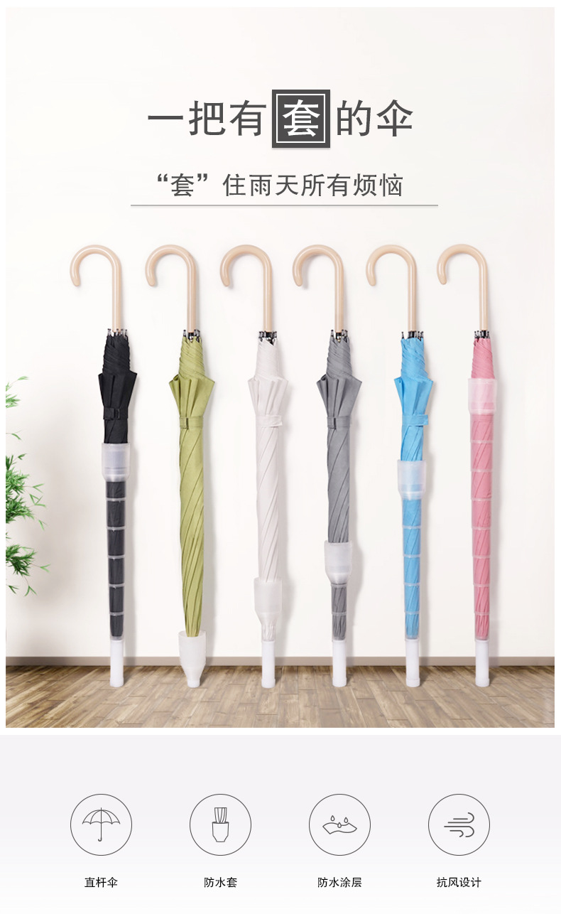 방수 후크 우산 긴 손잡이 우산 여성 신선 증가 강화 대형 일자 손잡이 우산 인쇄 가능 로고 공장 도매