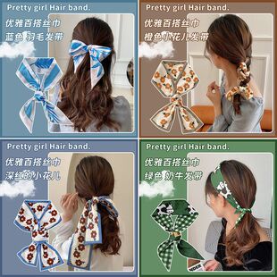 春秋新款韩国头饰法式复古飘带发带 丝带发圈丝巾百搭女