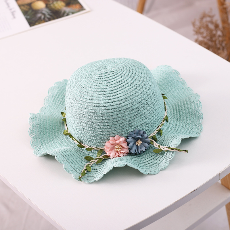 여름 새로운 부모-자식 밀짚 모자 가방 세트 어린이 비치 모자 소녀의 신선한 꽃 차양 모자