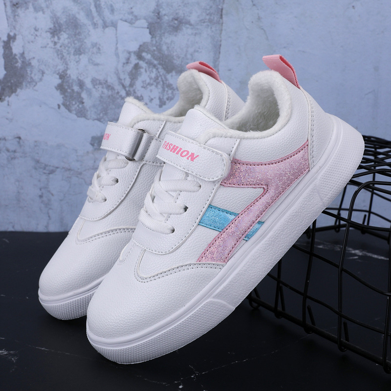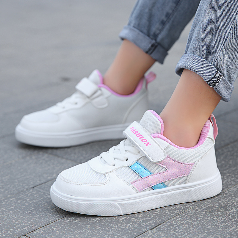 어린이 흰색 신발 소년과 소녀를 위한 새로운 기모 캐주얼 보드 신발 중학생을 위한 크로스 보더 메쉬 신발