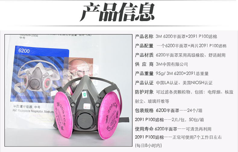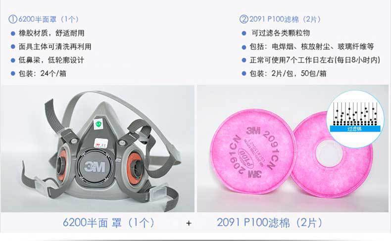 3M 마스크 6200 2091 필터 면 먼지 마스크 산업 먼지 용접기 연기 유리 섬유 연삭 탄광