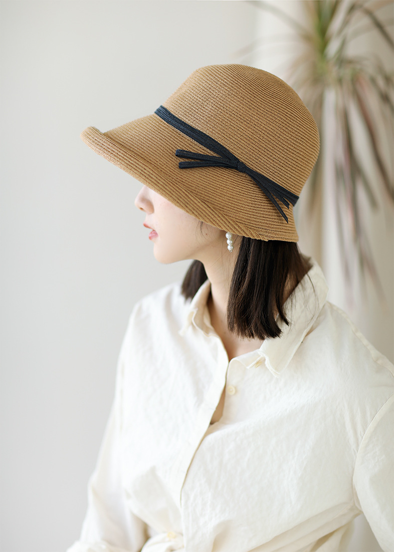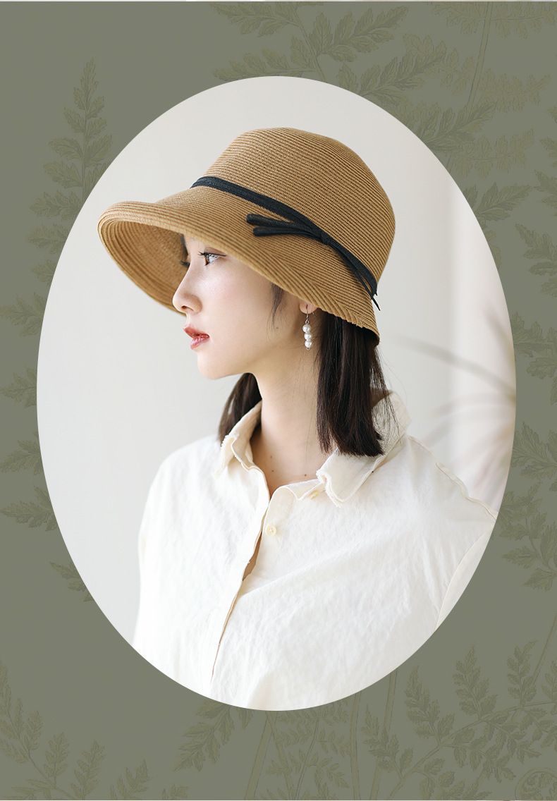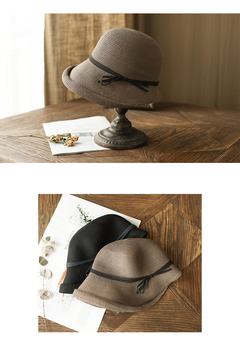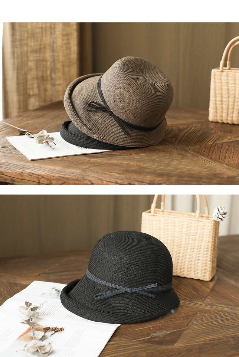햅번 스타일 양산 밀짚 모자 여성용 빈티지 접이식 분지 모자 예술적 어부 모자 간단한 태양 모자 캐주얼 멋진 모자