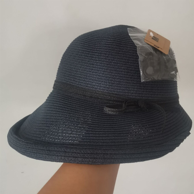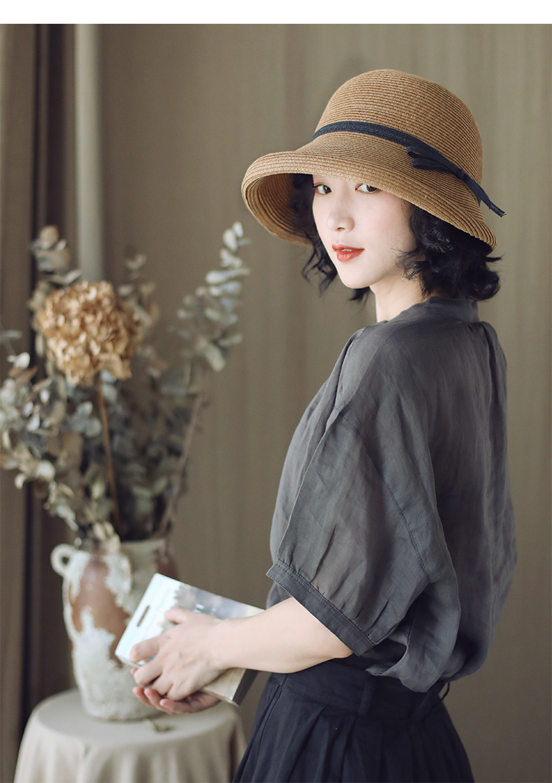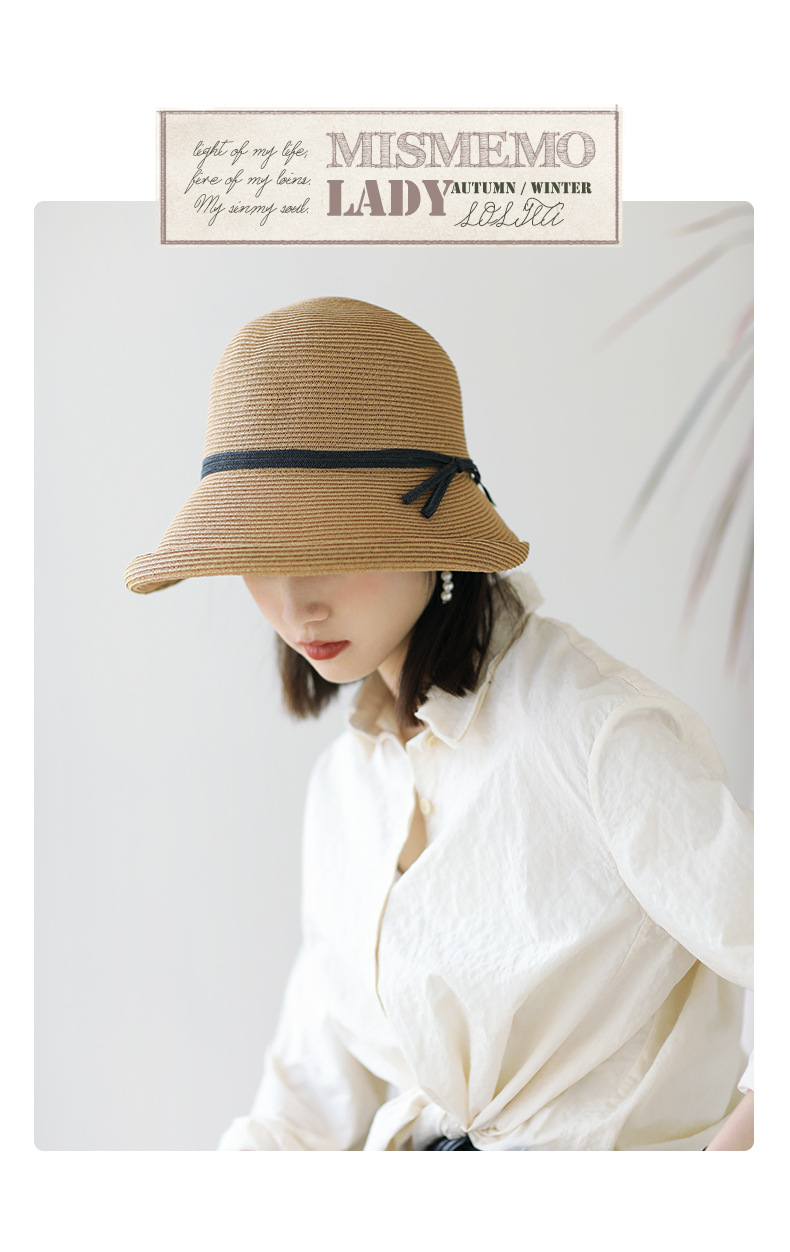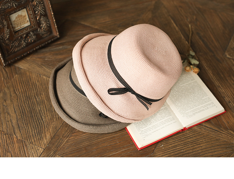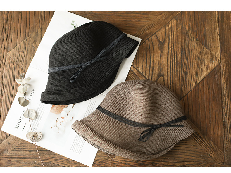 햅번 스타일 양산 밀짚 모자 여성용 빈티지 접이식 분지 모자 예술적 어부 모자 간단한 태양 모자 캐주얼 멋진 모자